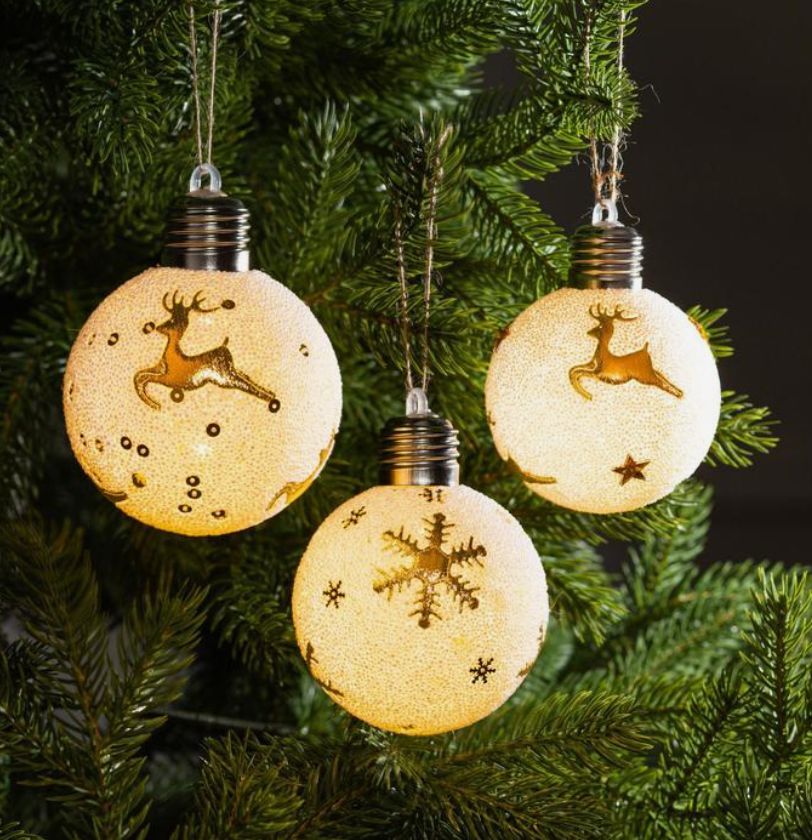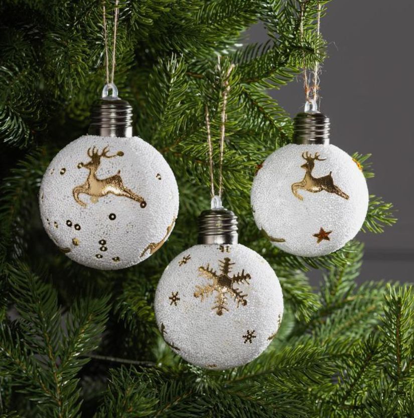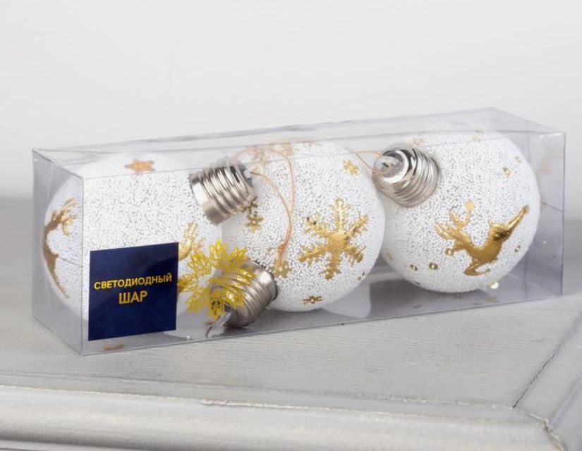 Набор елочных шаров "Золотистые узоры", d=8 см, 1LED, 3 шт, от батареек, Т/БЕЛЫЙ 5864395