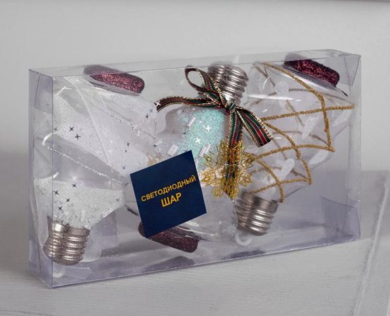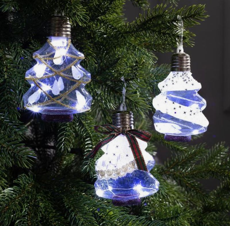 Набор елочных шаров со светодиодами "Елочки белые", 3 шт, БЕЛЫЙ 4834895