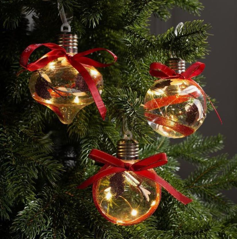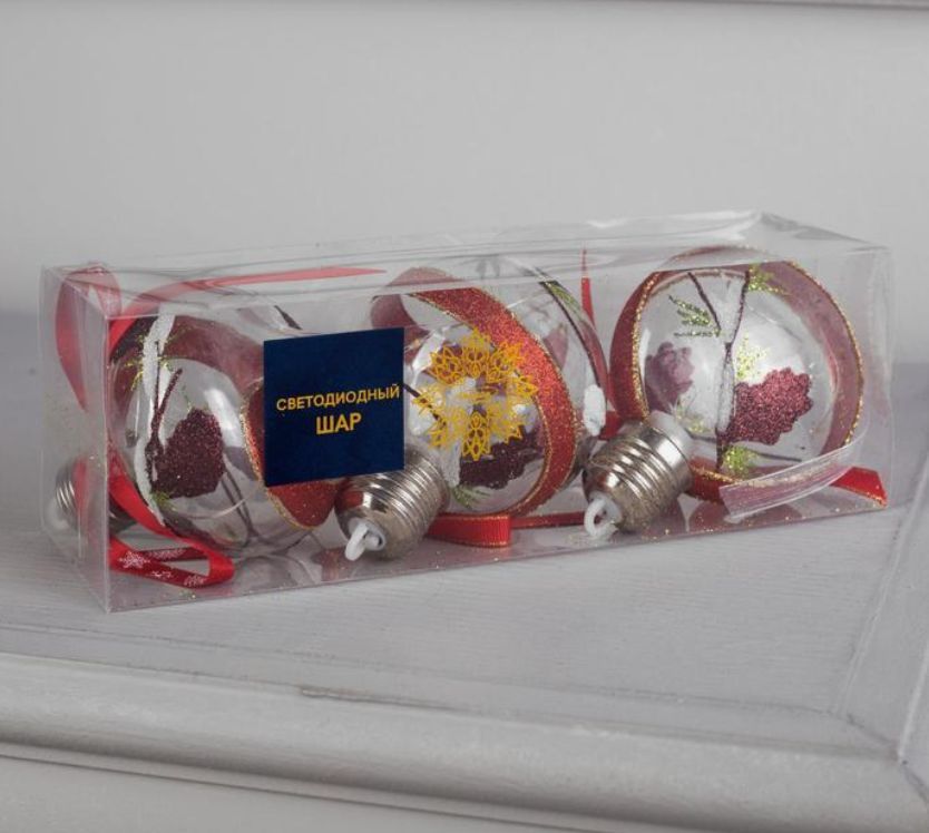 Набор елочных шаров со светодиодами "Шары с еловыми шишками", 3 шт, Т/БЕЛЫЙ 4834898