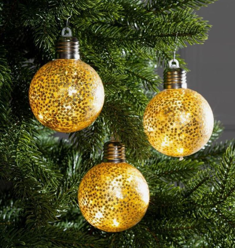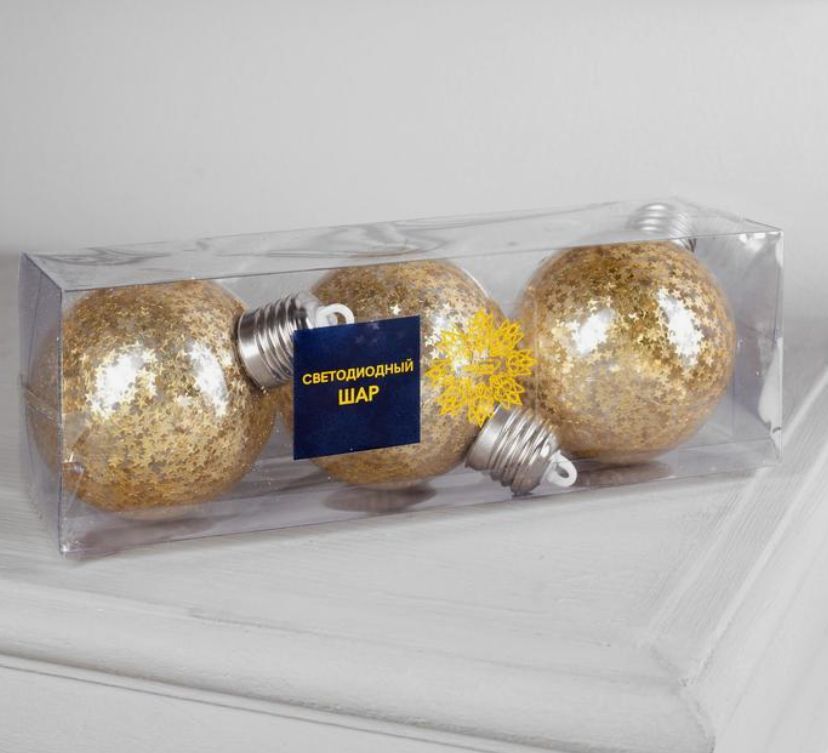 Набор елочных шаров со светодиодами "Звездочки золотые", 3 шт., d=8 см, Т/БЕЛЫЙ 4834900