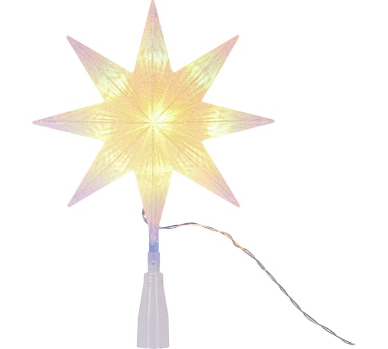 Верхушка на ёлку VEGAS Звезда 8-конечная белая 5515010 LED теплый, 22*5.5*30см, с таймером, батарейки АА*3 шт (не в комплекте)