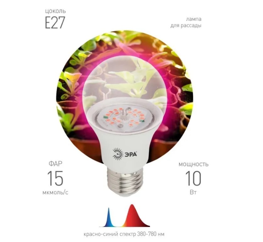 Маленький огород дома - это реально! Со светодиодной фитолампой для растений FITO-10W-RB-E27-K мощностью 10 Вт вы сможете выращивать не только рассаду, но и поддерживать взрослые растения на кухне, в комнате или балконе. Особенно светодиодная лампа FITO-10W-RB-E27-K мощностью 10 Вт поможет вырастить вам помидоры, перцы, баклажаны и зелень. Фитолампа имеет красно-синий спектр, что благоприятно влияет для получения всех необходимых веществ для поддержания здоровой корневой системы, а также ускорит их рост. Оптимальное расстояние фитолампы до листьев 10 см. Не рекомендуем располагать на высоте более 35 см, так как это не даст должного эффекта при данной мощности лампы. Лампа Эра имеет цоколь Е27 и подходит к любому светильнику с таким же цоколем. Радуйте себя богатым урожаем вместе с светодиодной фитолампой для растений FITO-10W-RB-E27-K!