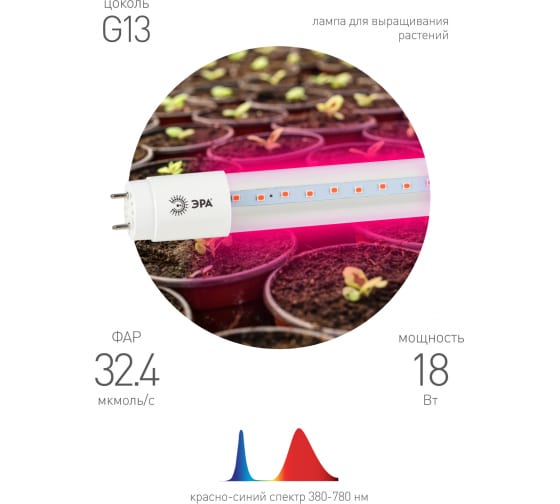 Преимущества ЭРА FITO 18W-RB-Т8-G13-NL красносинего спектра Б0042990