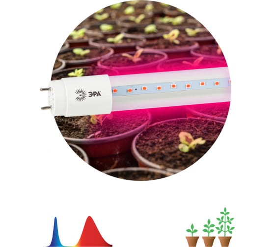 Лампа ЭРА Т8 красно-синего спектра (с фиолетовым свечением) помогут выращивать большинство видов зелени и декоративные растения