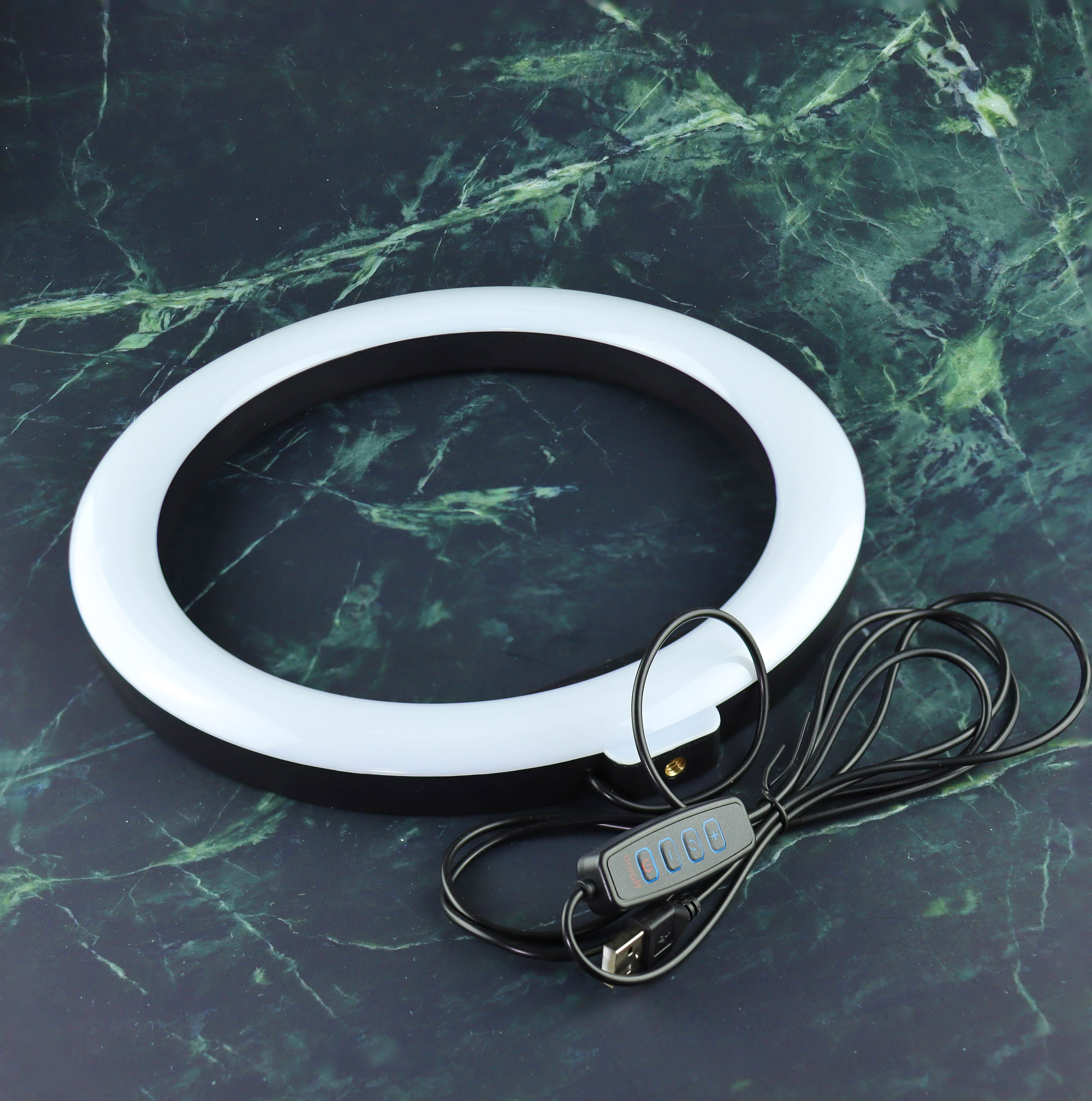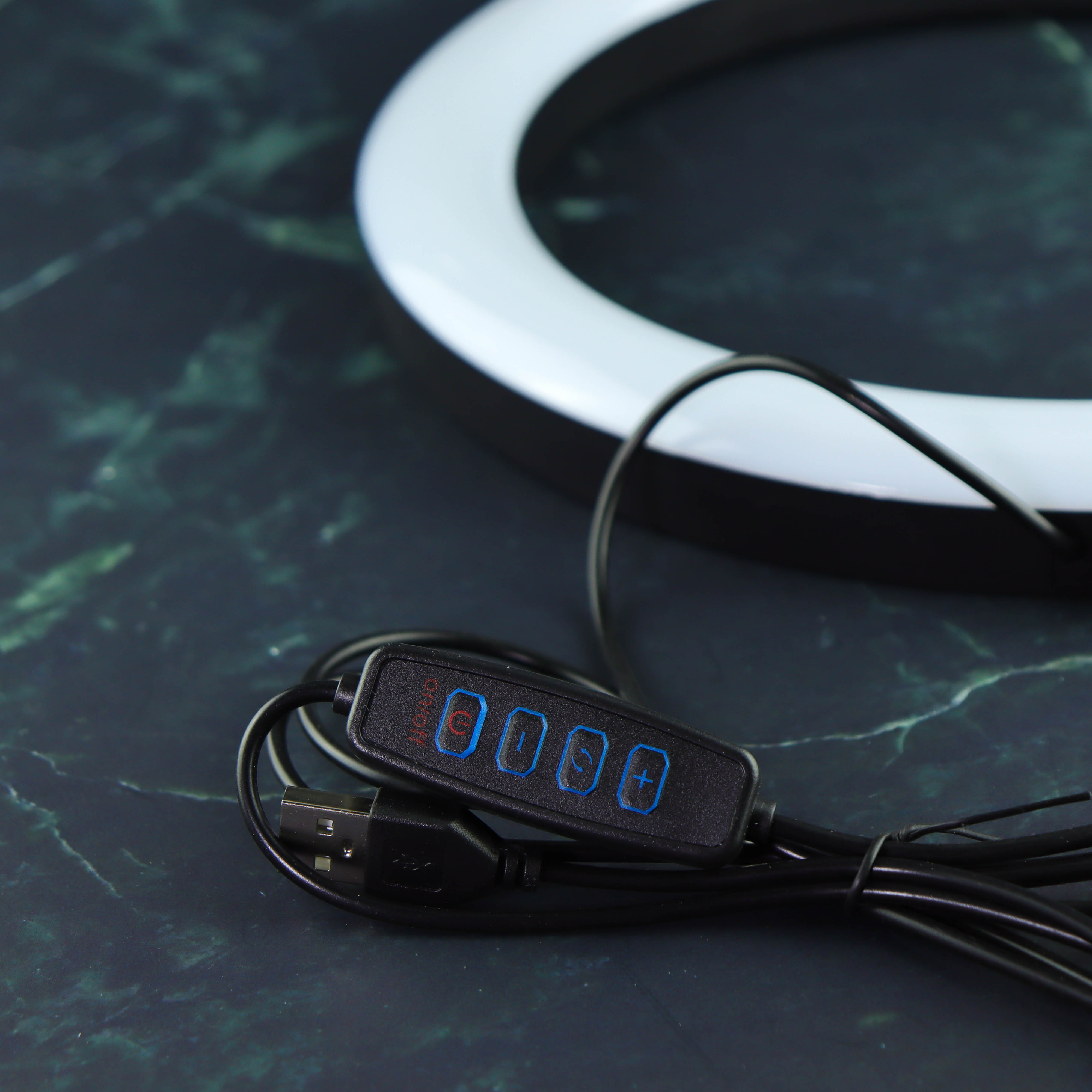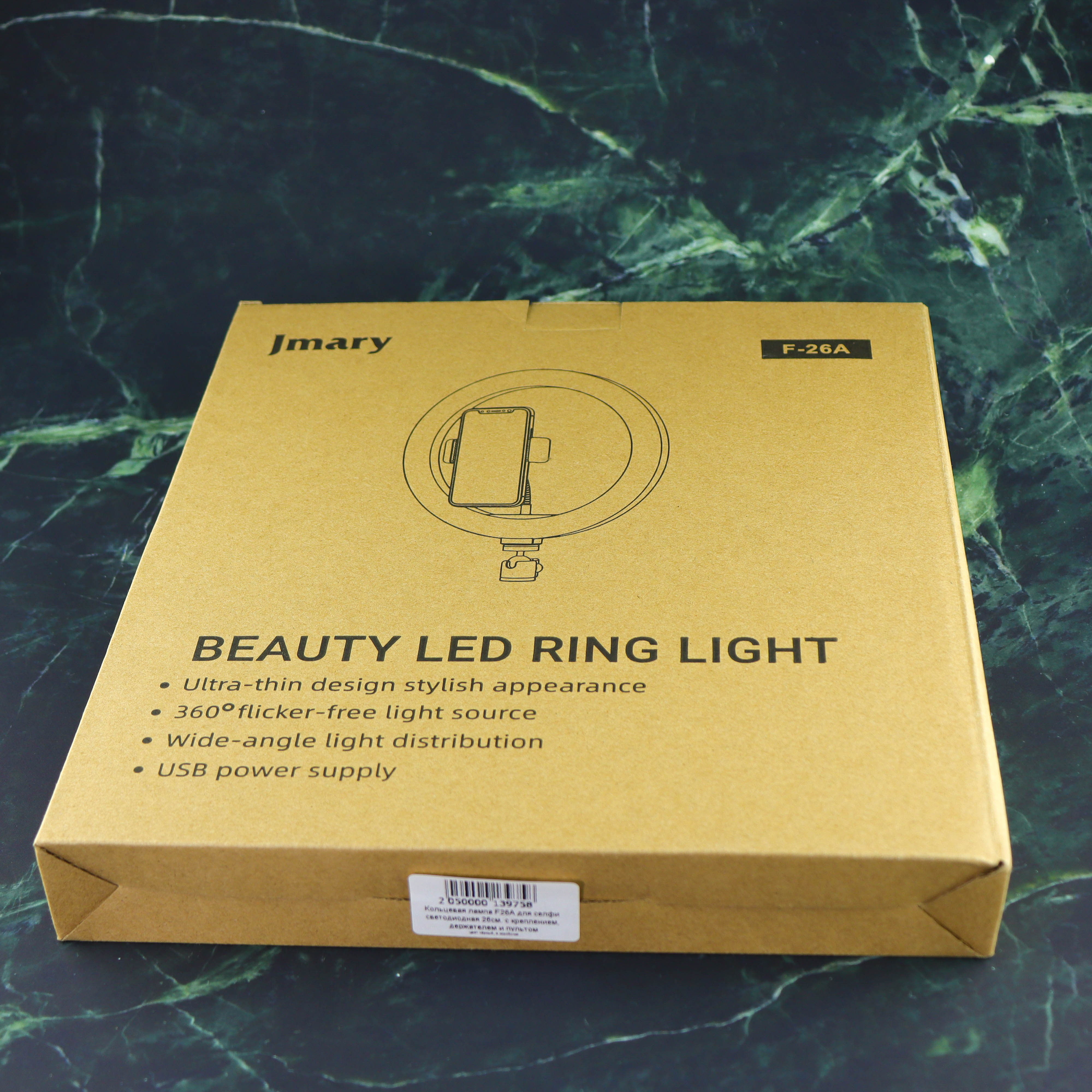 Кольцевая лампа F26A для селфи светодиодная 26см. с креплением, держателем и пультом, чёрный
