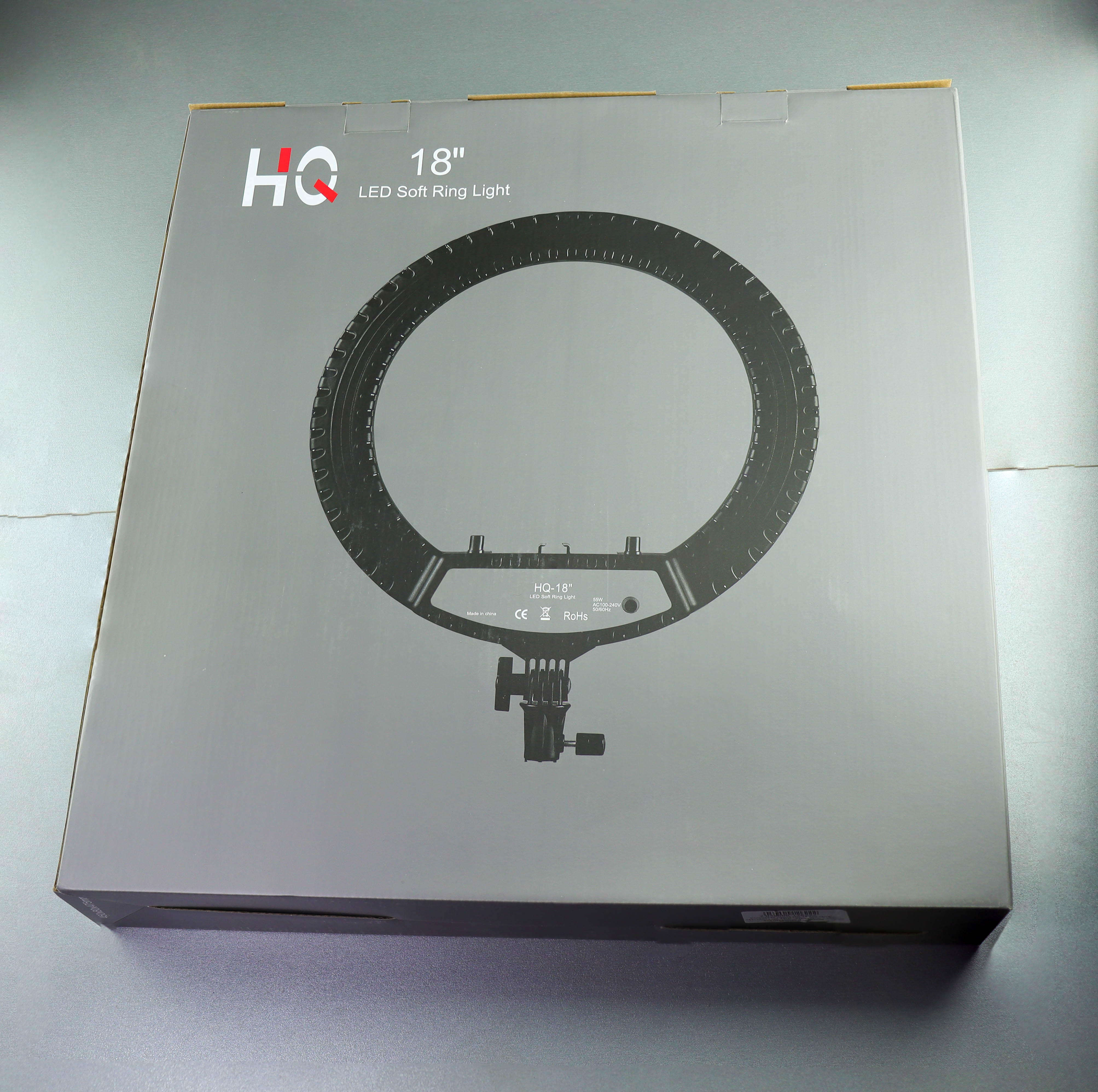 Кольцевая лампа HQ-18 для селфи светодиодная 44см. держатель + сумка для переноски и хранения, чёрный