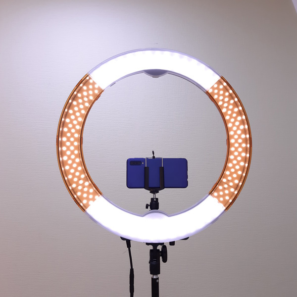 Кольцевая LED лампа бело-оранжевые вставки(45см)+держатель для телефона+сумка+штатив(металл)2.1м