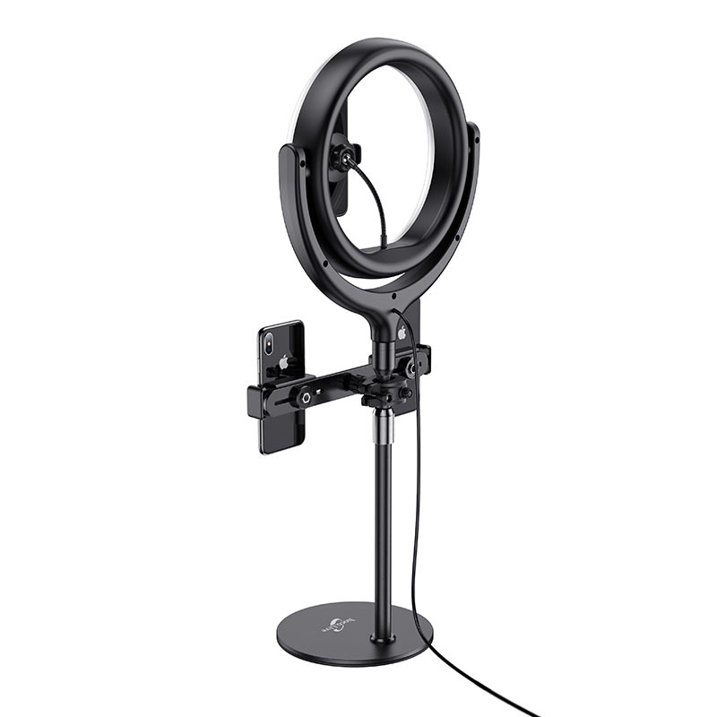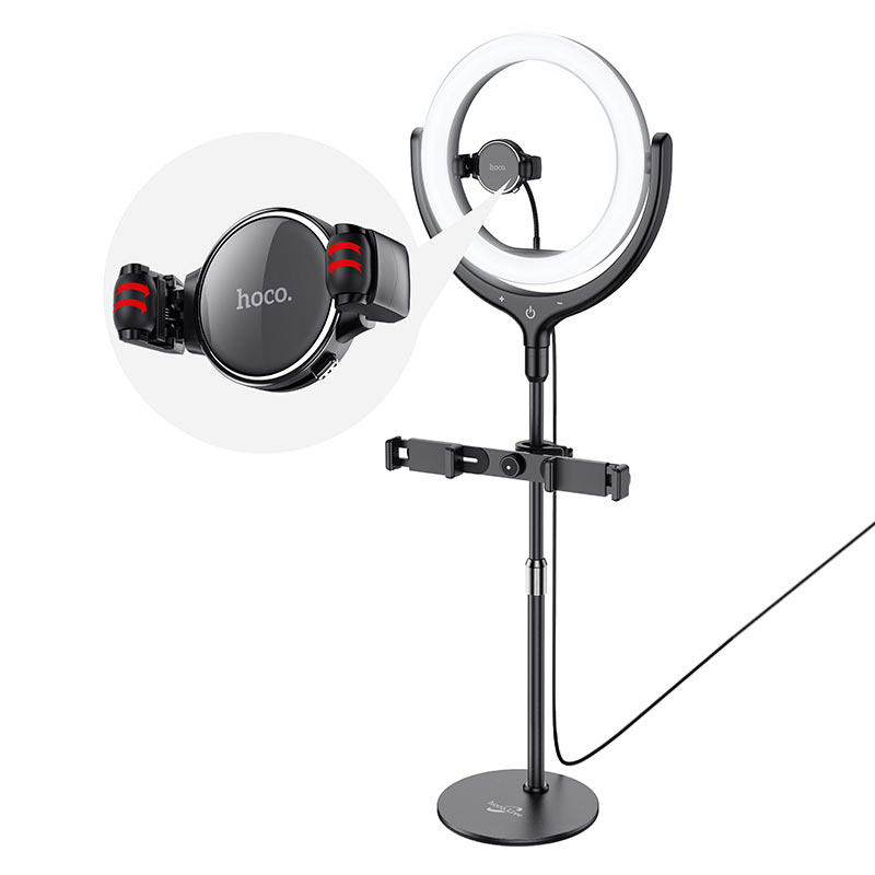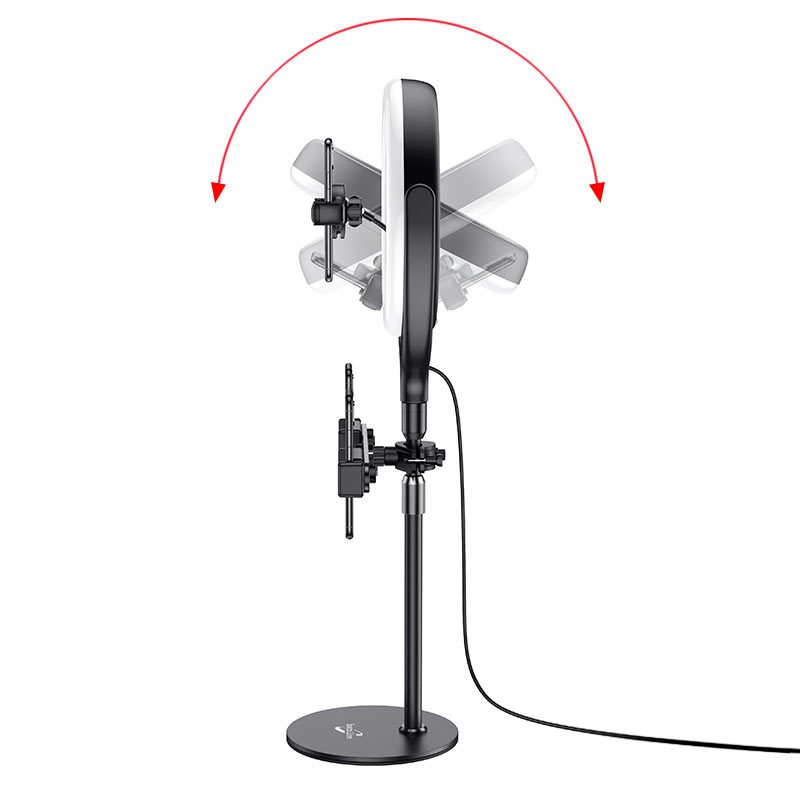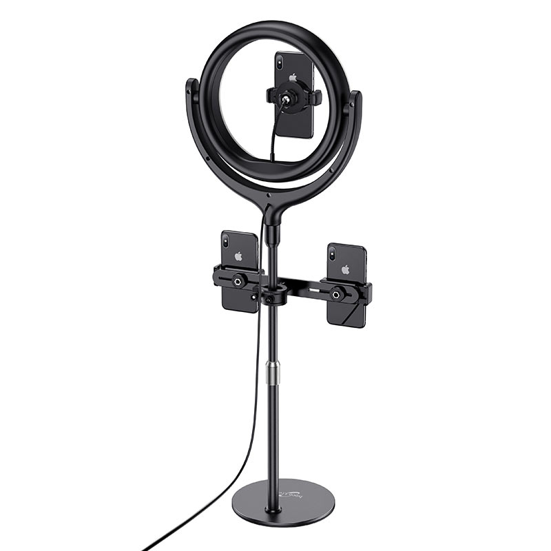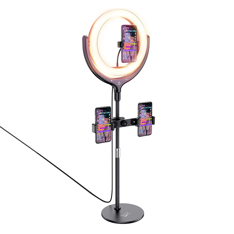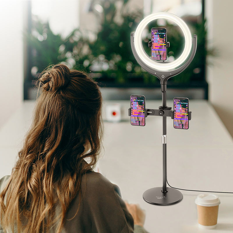Лампа с кольцевой подсветкой для эфиров и стримов с тремя держателями телефонов, одновременное вещание на разные платформы, фото, и т.д.