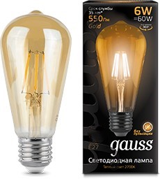 Технические характеристики Gauss LED Filament ST64 E27 6W Golden 2400К 102802006