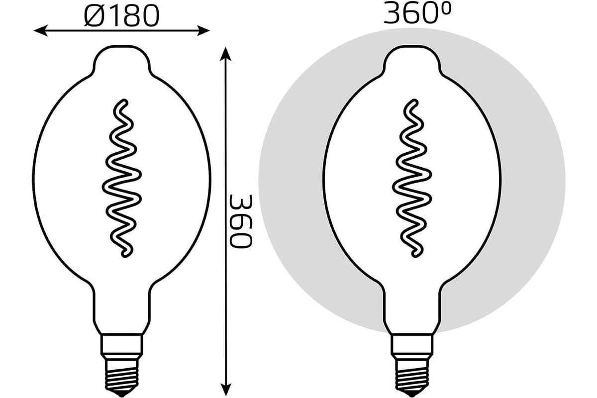 Технические характеристики Gauss LED Filament BT180 E27 8.5W Gray 165lm 1800K 1/2 152802005