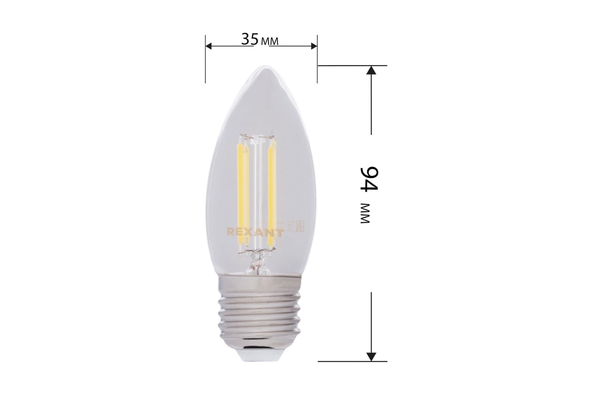 Филаментная диммируемая лампа REXANT Свеча CN35 7.5 Вт 4000K E27 604-090 прекрасно подходит для дизайнерского освещения комнат, домов, гостиниц, кафе, и других объектов.