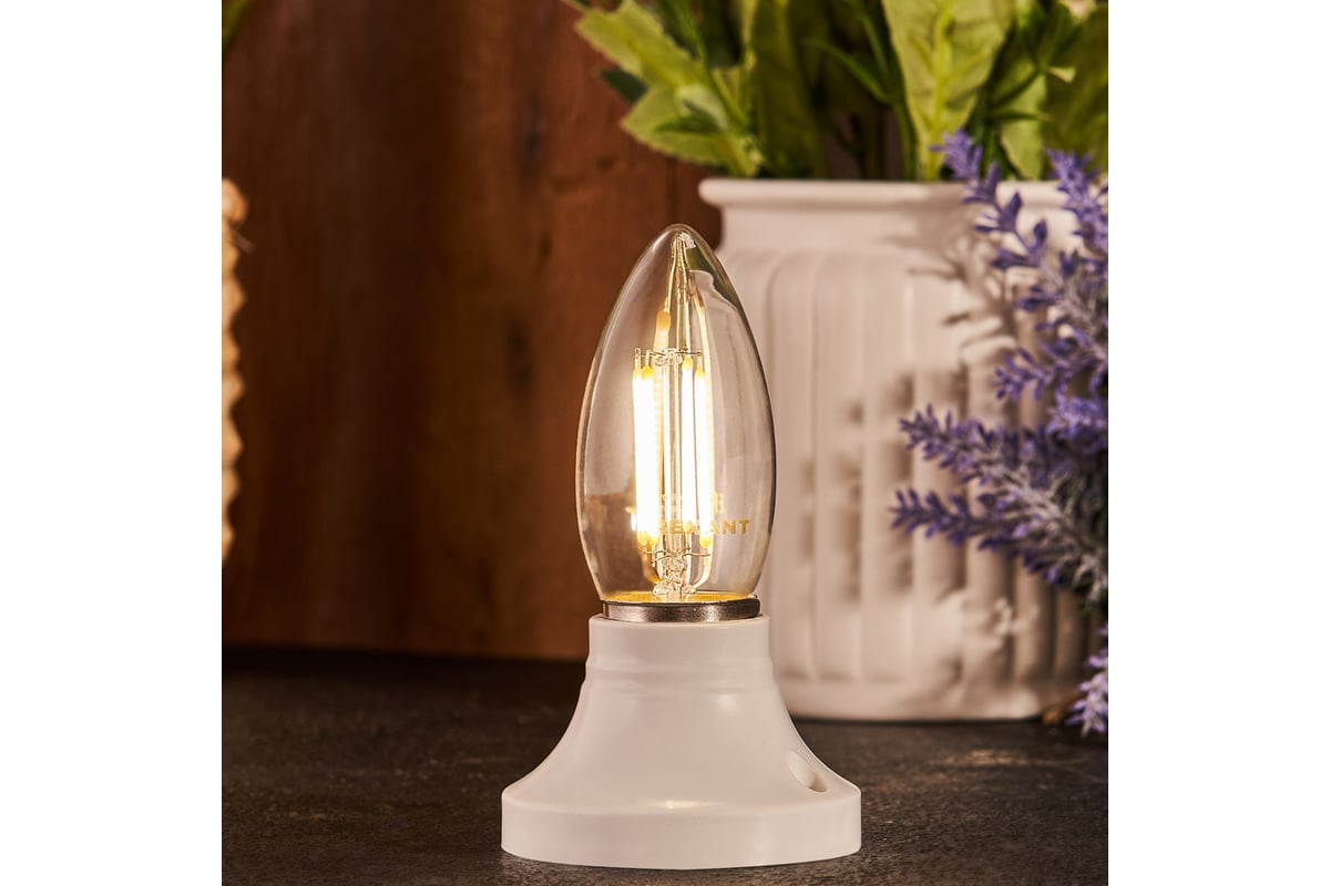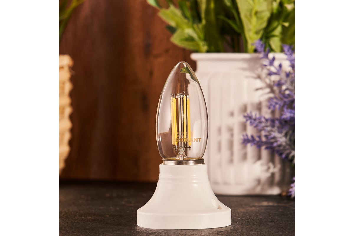 Филаментная диммируемая лампа REXANT Свеча CN35 7.5 Вт 4000K E27 604-090 излучает ровное свечение без бликов и мерцания.