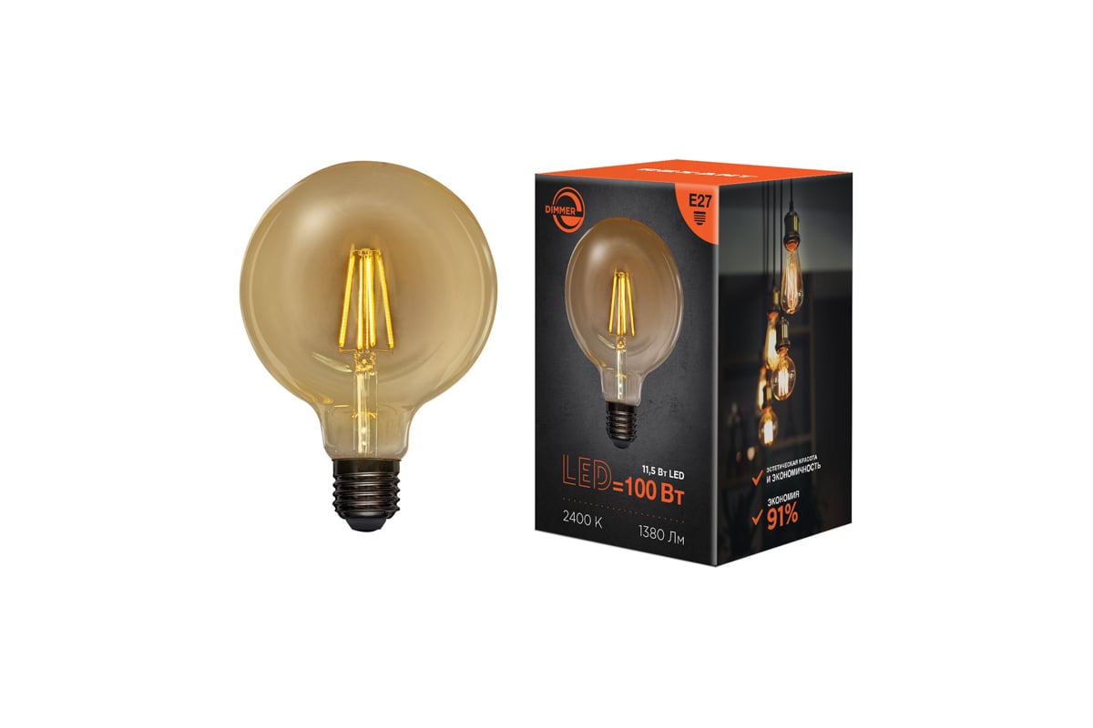 Яркость свечения филаментной лампы можно отрегулировать при помощи диммера.