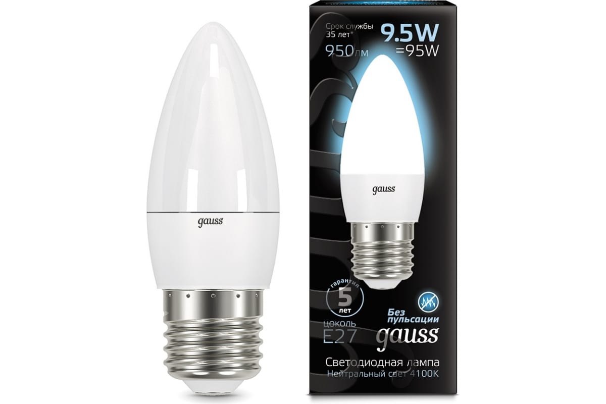 Технические характеристики Gauss LED Свеча E27 9.5W 950lm 4100К 103102210