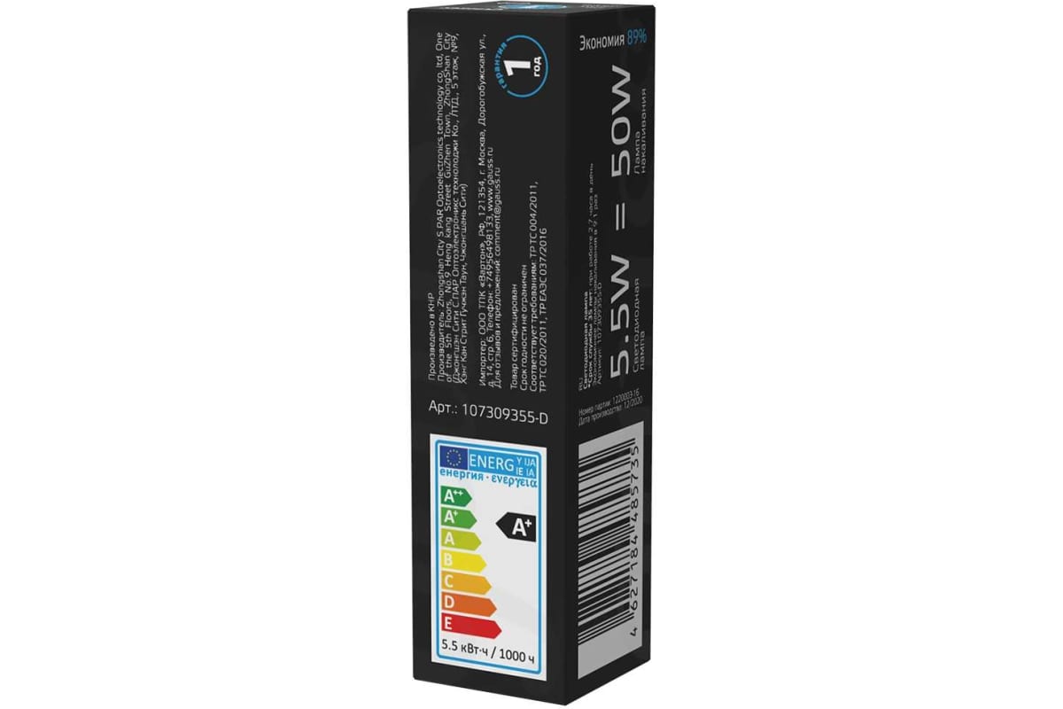 Технические характеристики Gauss G9 AC185-265V 5,5W 580lm 6500K керамика LED 107309355-D