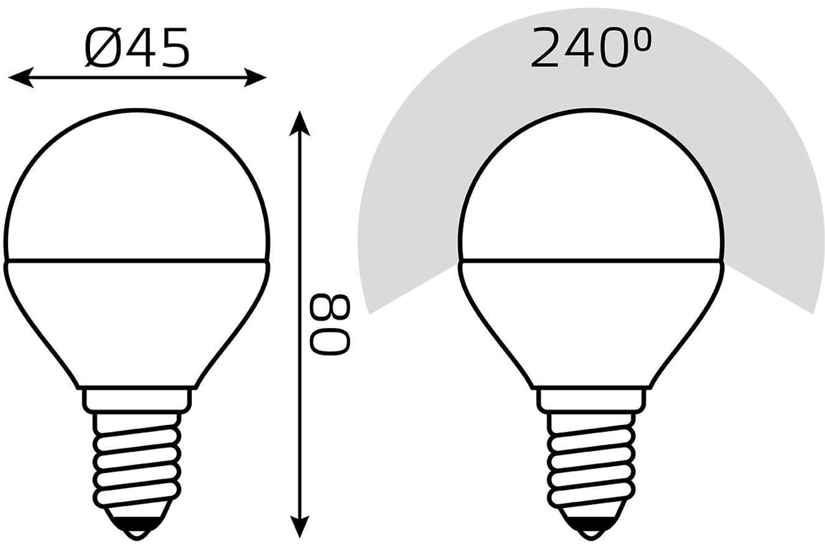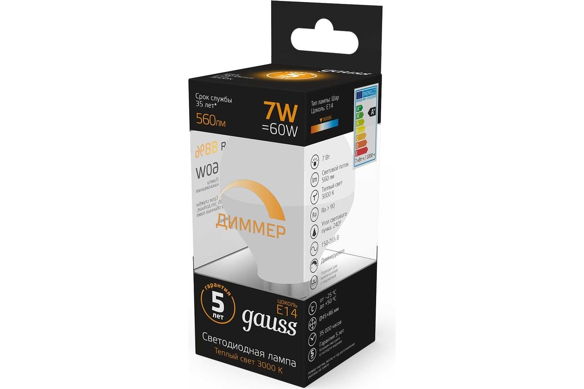 Технические характеристики Gauss LED Шар-dim E14 7W 560lm 3000К 105101107-D