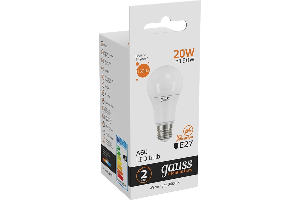 Технические характеристики Gauss LED Elementary A60 20W E27 2700K 23219