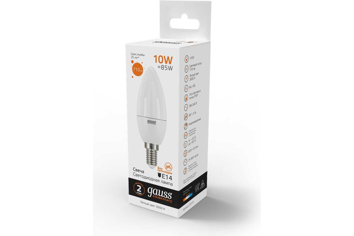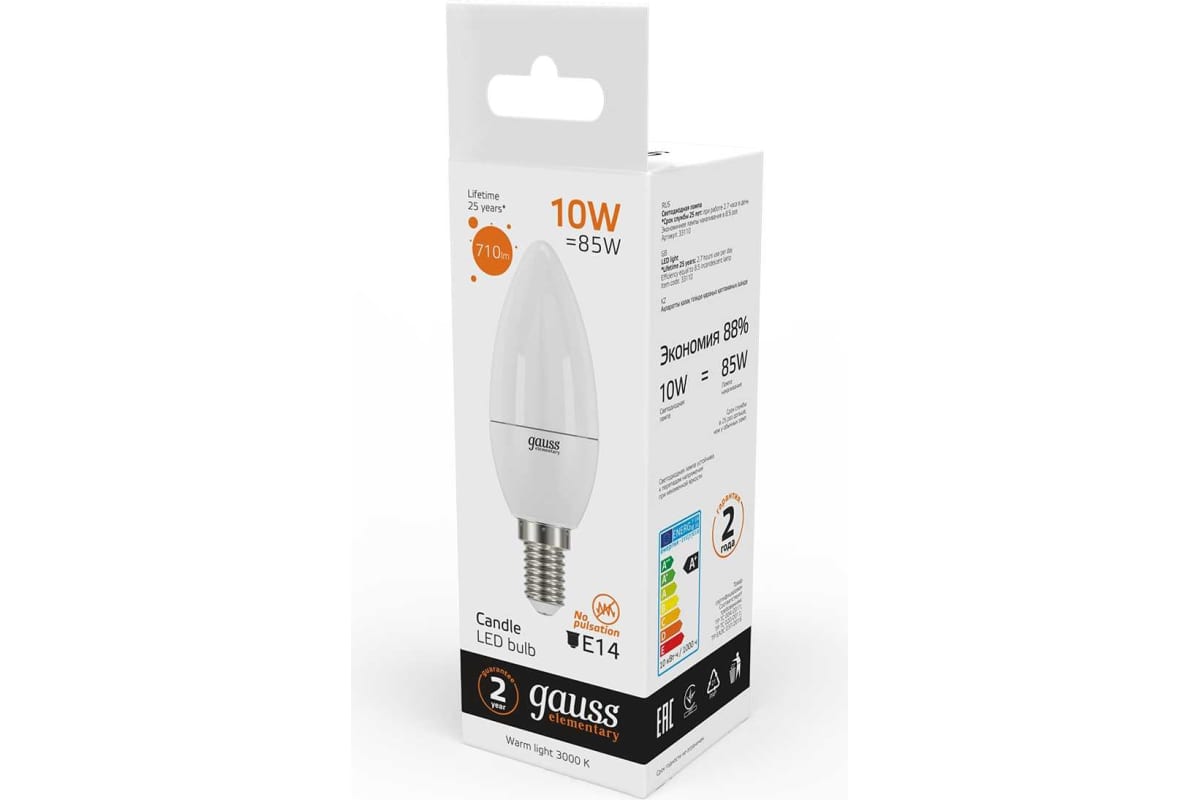 Технические характеристики Gauss LED Elementary Свеча 10W E14 710lm 3000K 33110