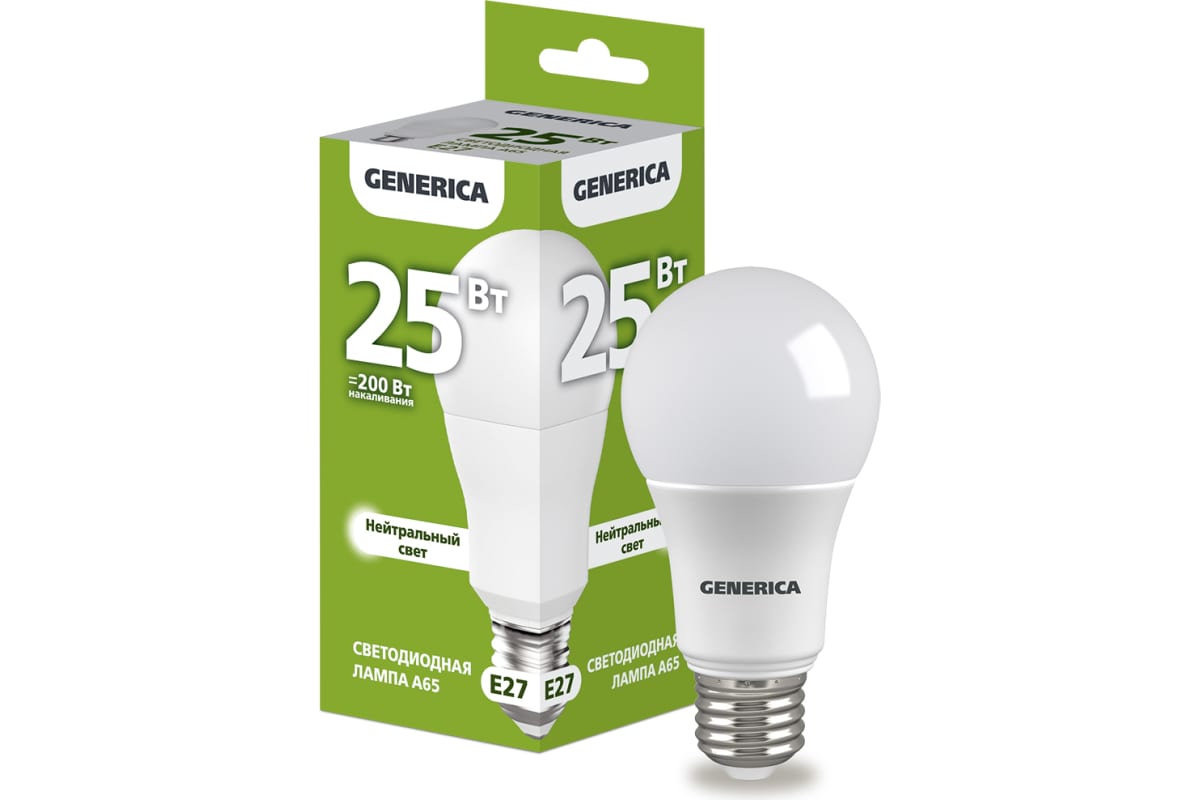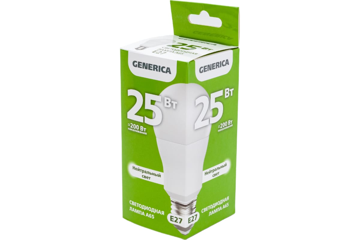 Технические характеристики GENERICA A65 груша 25Вт 230В 4000К E27 LL-A65-25-230-40-E27-G