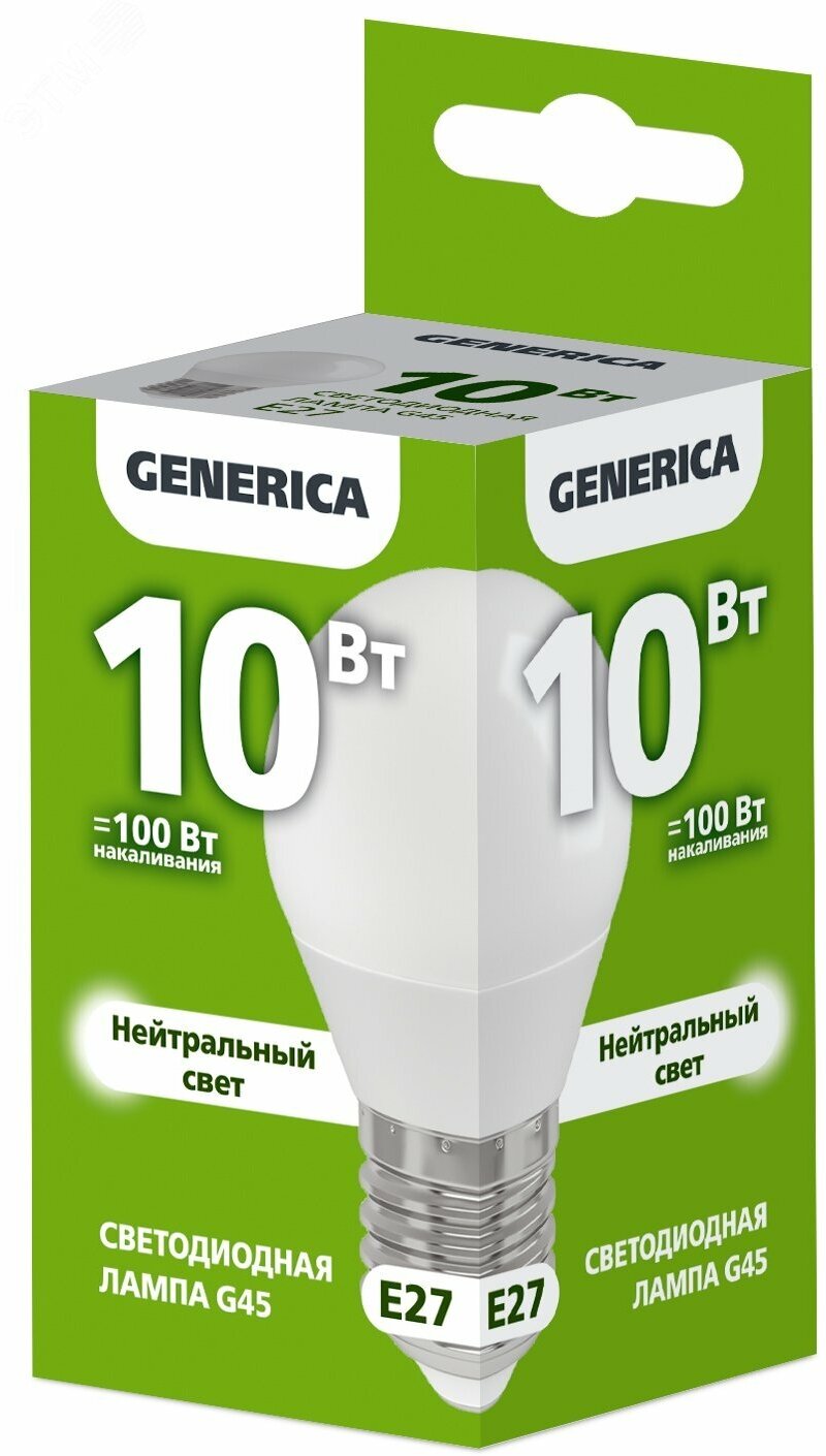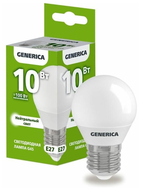 Технические характеристики GENERICA G45 шар 10Вт 230В 4000К E27 LL-G45-10-230-40-E27-G
