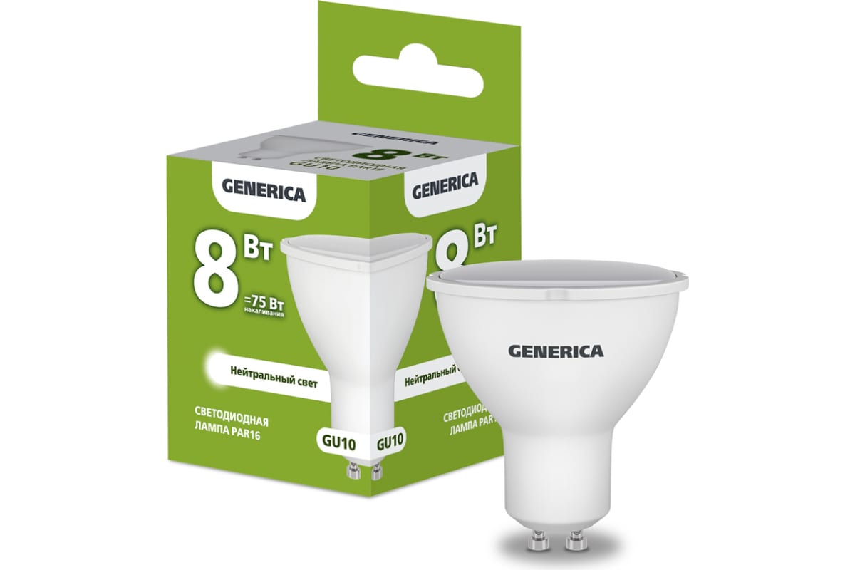 Технические характеристики GENERICA PAR16 софит 8Вт 230В 4000К GU10 LL-PAR16-08-230-40-GU10-G