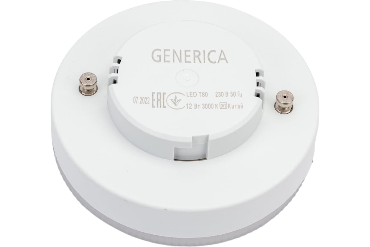 Технические характеристики GENERICA T80 таблетка 12Вт 230В 3000К GX53 LL-T80-12-230-30-GX53-G