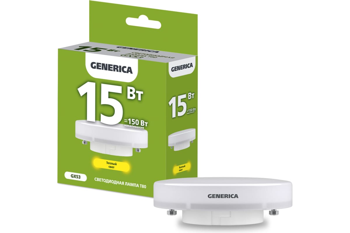 Технические характеристики GENERICA T80 таблетка 15Вт 230В 3000К GX53 LL-T80-15-230-30-GX53-G