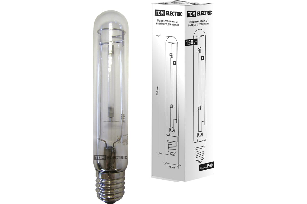 Натриевая лампа высокого давления TDM ДНаТ 150 Вт Е40 SQ0325-0003 применяется для освещения улиц, зданий, сооружений и спортивных площадок. Лампа обладает прозрачной колбой и цоколем Е40. Разрядная трубка наполнена амальгамой натрия, в ней поддерживается сверхвысокое давление. Цоколь - Е40. Мощность 150 Вт.