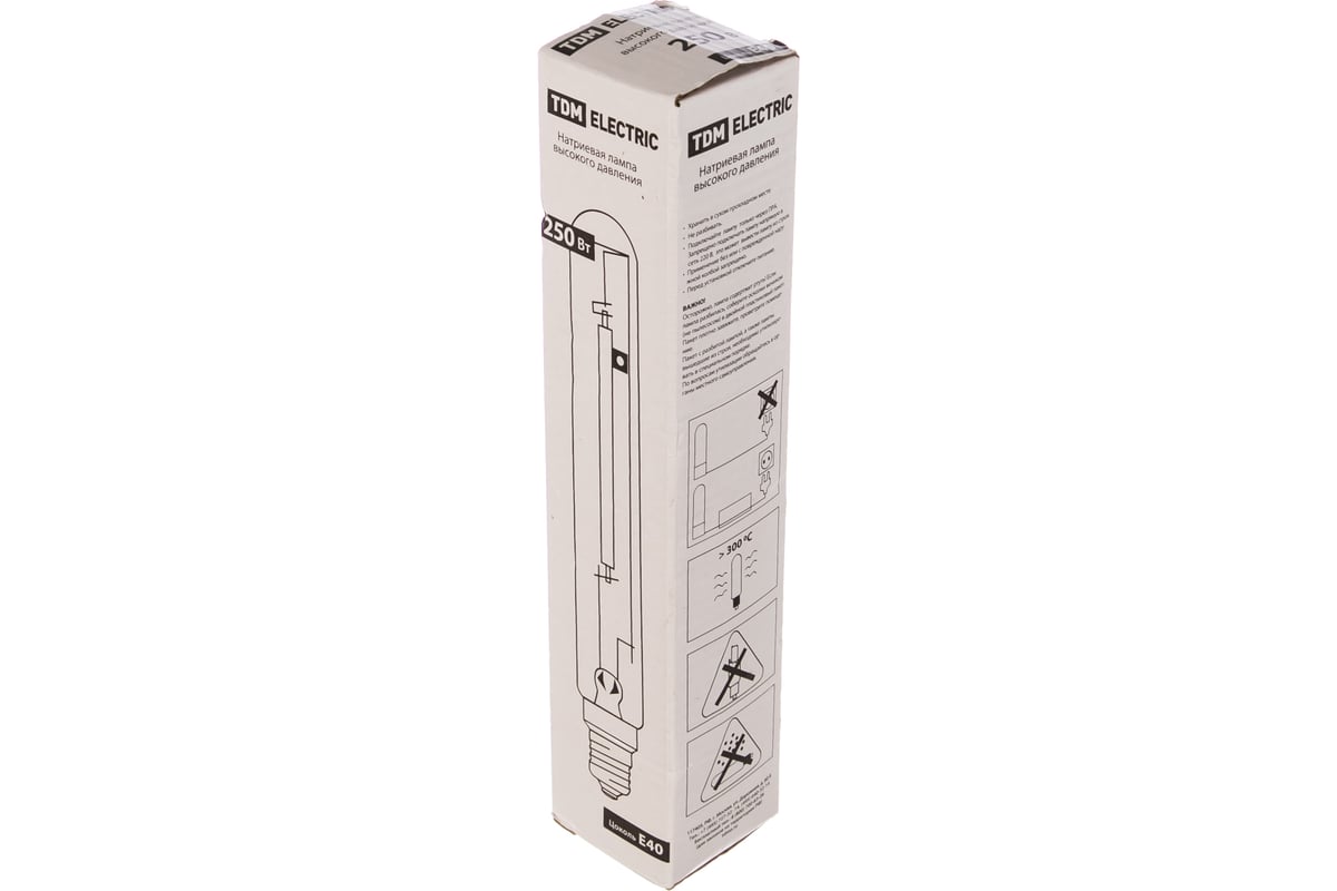 Натриевая лампа высокого давления TDM ДНаТ 250 Вт Е40 SQ0325-0004 подключается к сети 220 В при помощи соответствующих дросселей. Применяется совместно с уличными фонарями для освещения зданий, построек, вокзалов и т.д. Лампа также может применяться для освещения теплиц. Конструкция состоит из прозрачной колбы, разрядной трубки сверхвысокого давления и цоколя Е40. Мощность - 250 Вт.