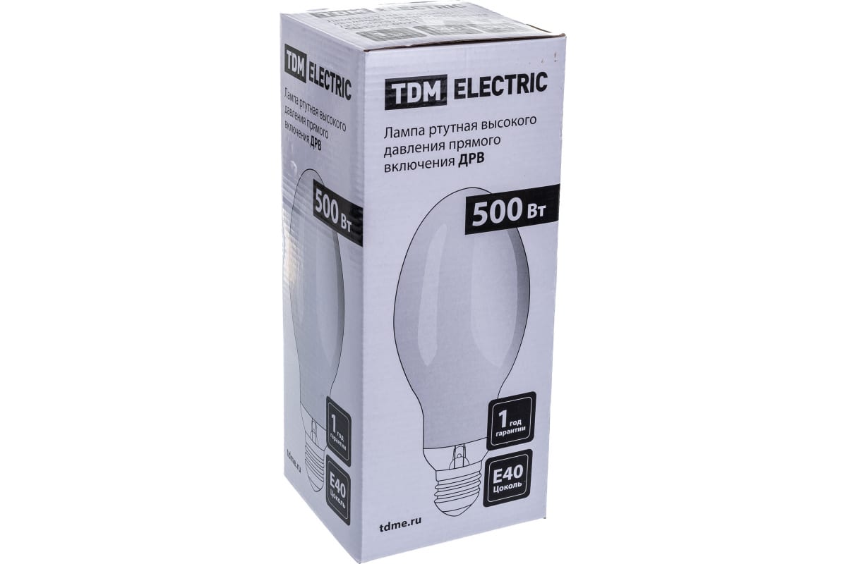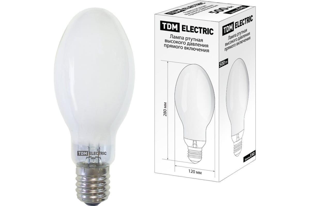 Ртутная лампа высокого давления TDM ДРВ 500 Вт Е40 SQ0325-0021 - это мощный источник света, который применяется для освещения парков, промышленных предприятий, открытых пространств и складских помещений. Лампа состоит из матовой колбы и цоколя Е40. Работает напрямую от сети 220 В. Мощность - 500 Вт.