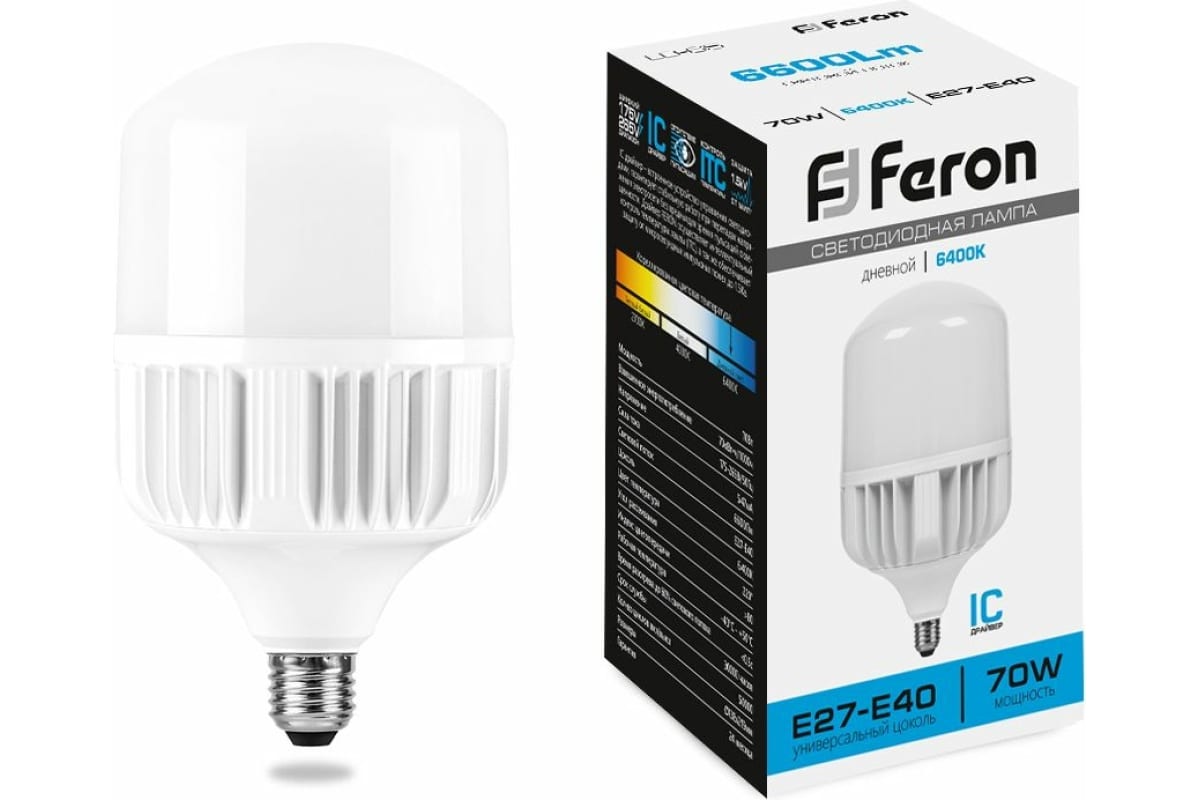 Светодиодная лампа 70W 230V E40 6400K Feron LB-65 25783 является современным аналогом таким типам ламп высокой мощности, как: накаливания, КЛЛ, ртуных и натриевых. Предназначена для установки и эксплуатации в складских, подсобных и промышленных помещениях.