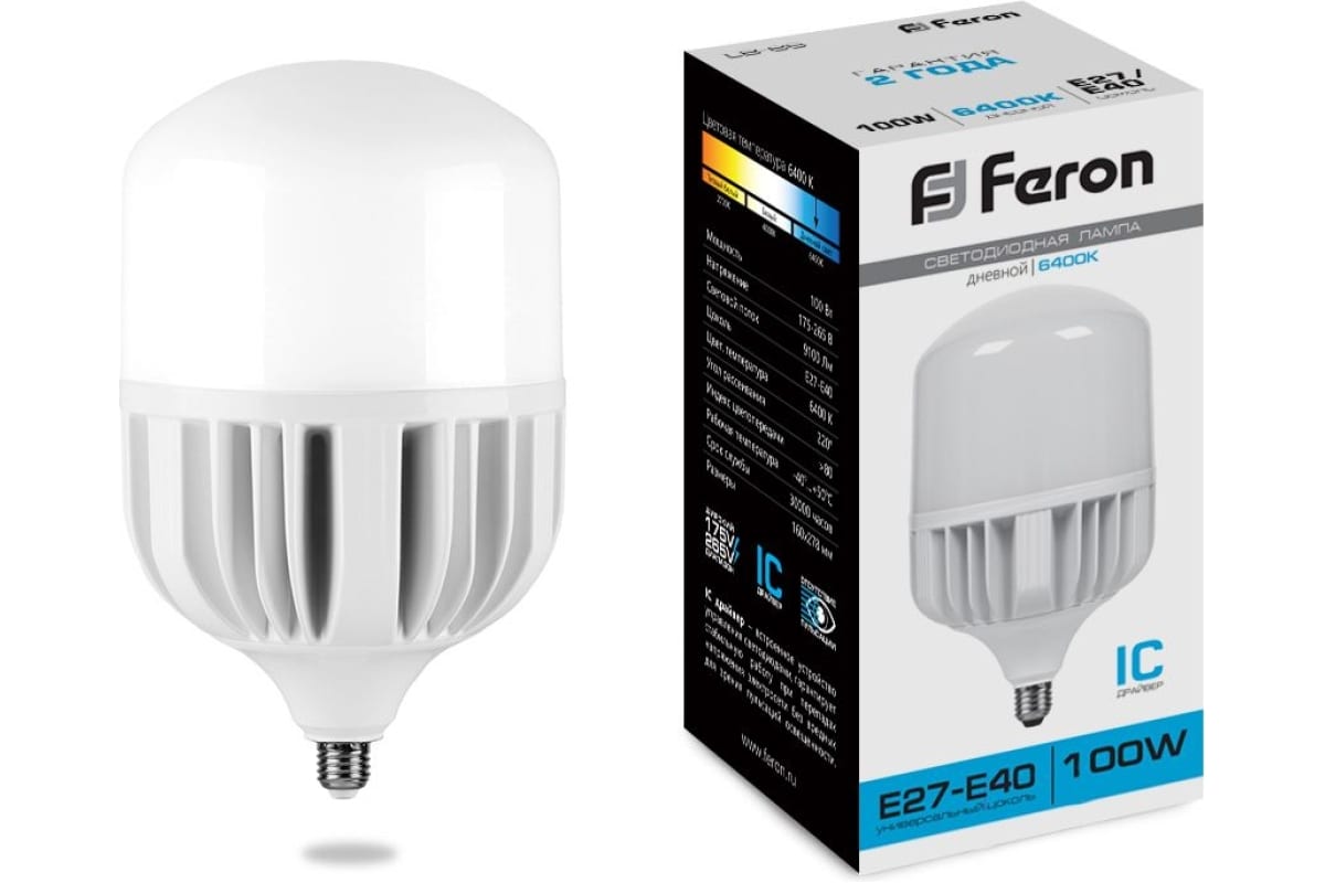 Светодиодная лампа 100W 230V E40 6400K Feron LB-65 25827 - отличается высокой мощностью, экологичностью, безопасностью и энергоэффективностью. Является прекрасной альтернативой промышленным лампам накаливая, КЛЛ, ДНаТ и ДРЛ.