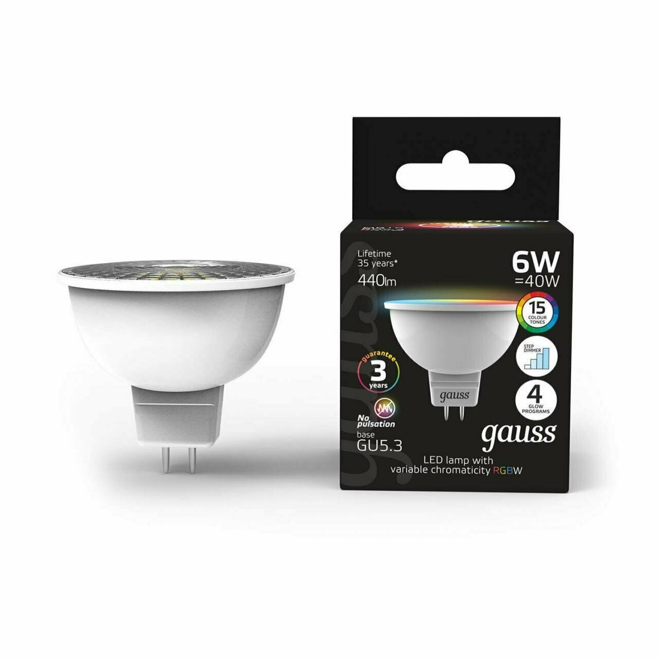Лампа Gauss Smart MR16, 6W, GU5.3, RGBW+dim, 1/10/100 101105406 имеет два варианта использования: