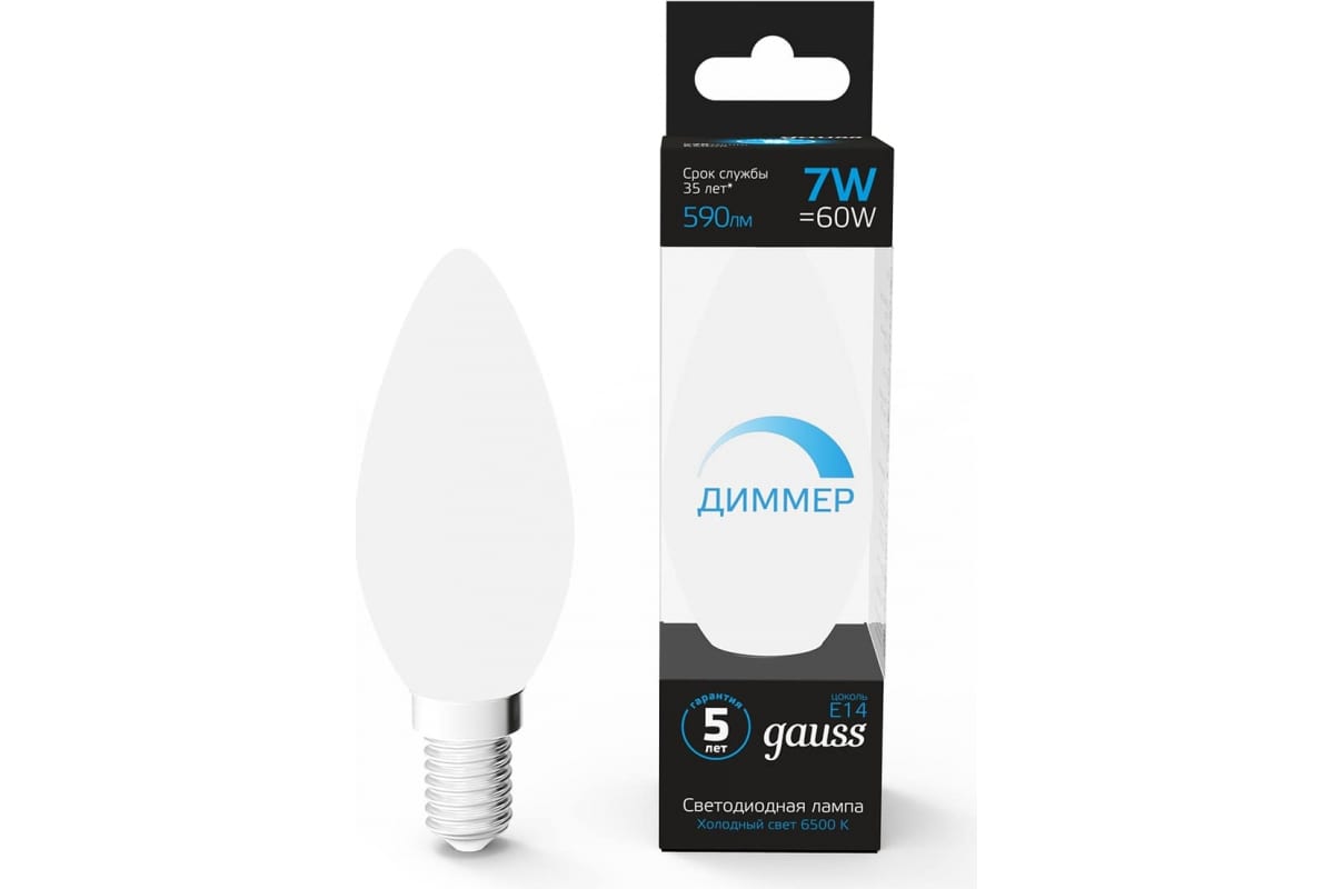 Диммируемая лампа Gauss Свеча 7W 590lm 6500К E14 LED 1/10/100 103101307-D - надежный источник освещения высокого качества.