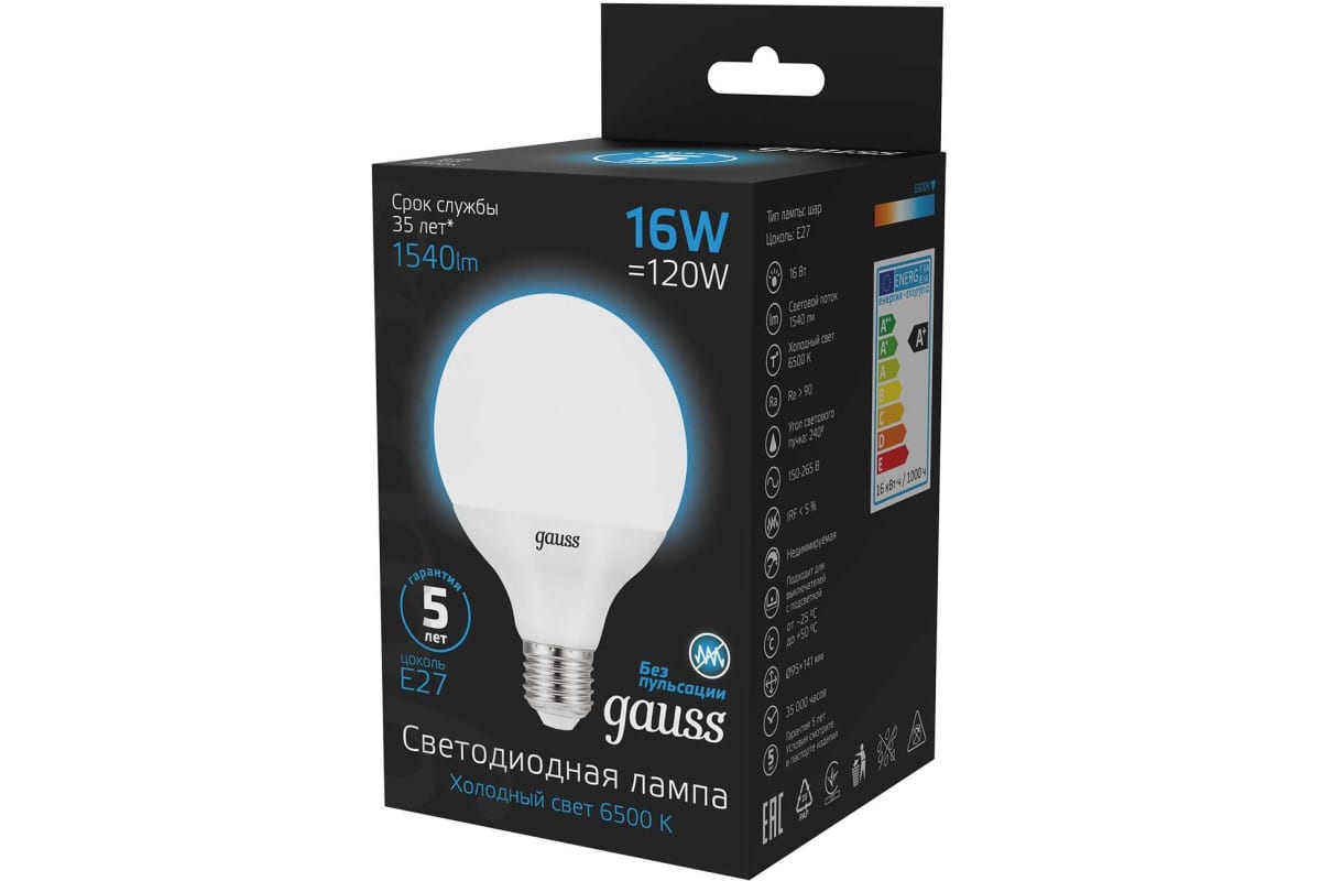 Технические характеристики Gauss G95 16W 1400lm 6500K E27 LED 105102316
