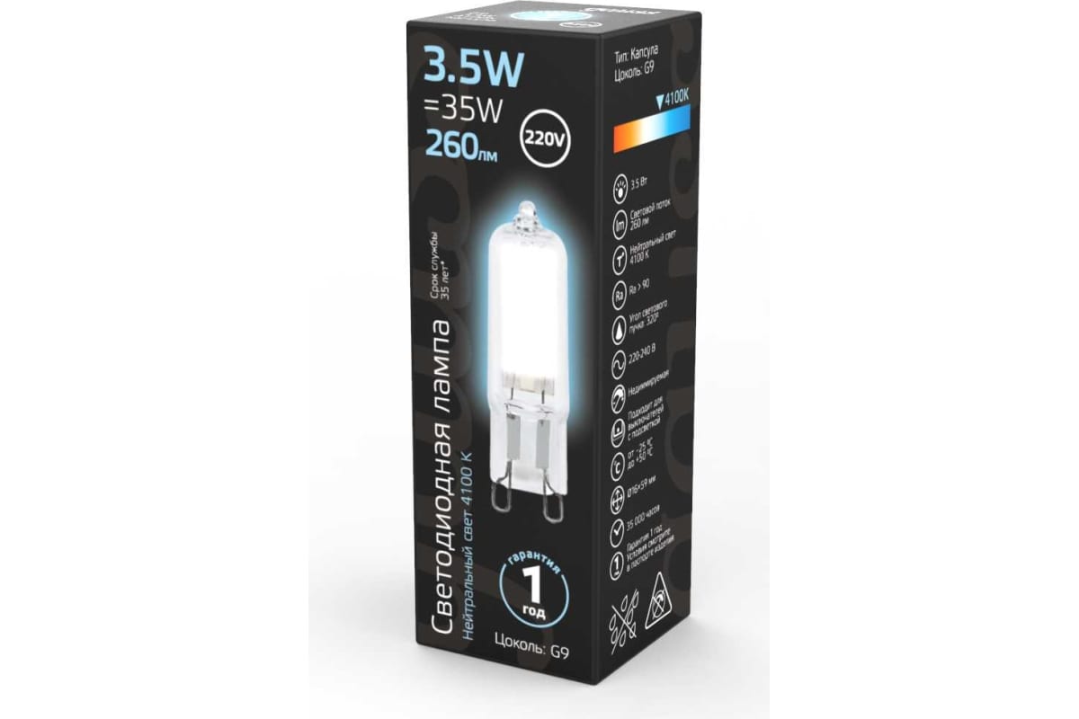 Технические характеристики Gauss LED G9 AC220-240V 3.5W 260lm 4100K Glass 107809203