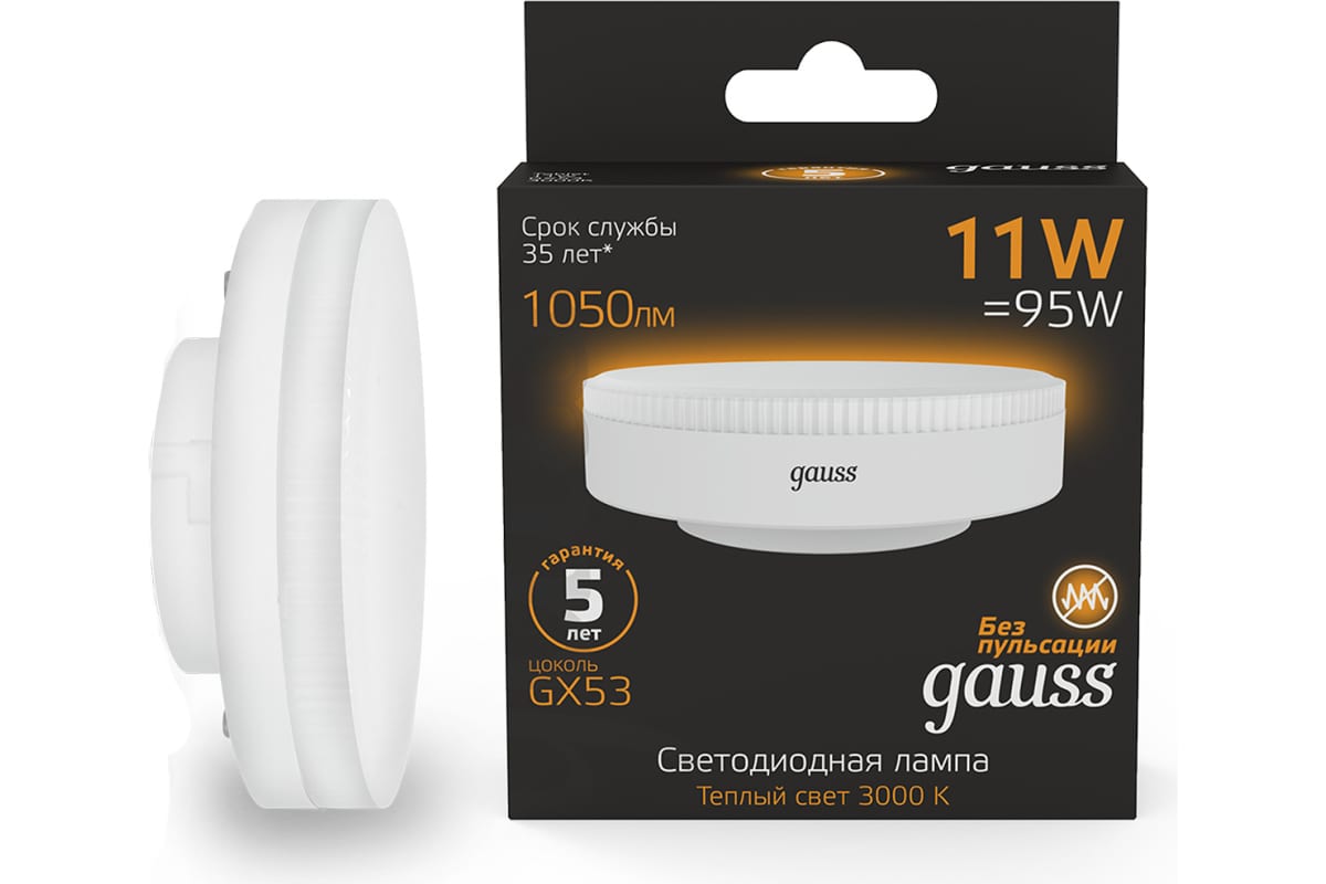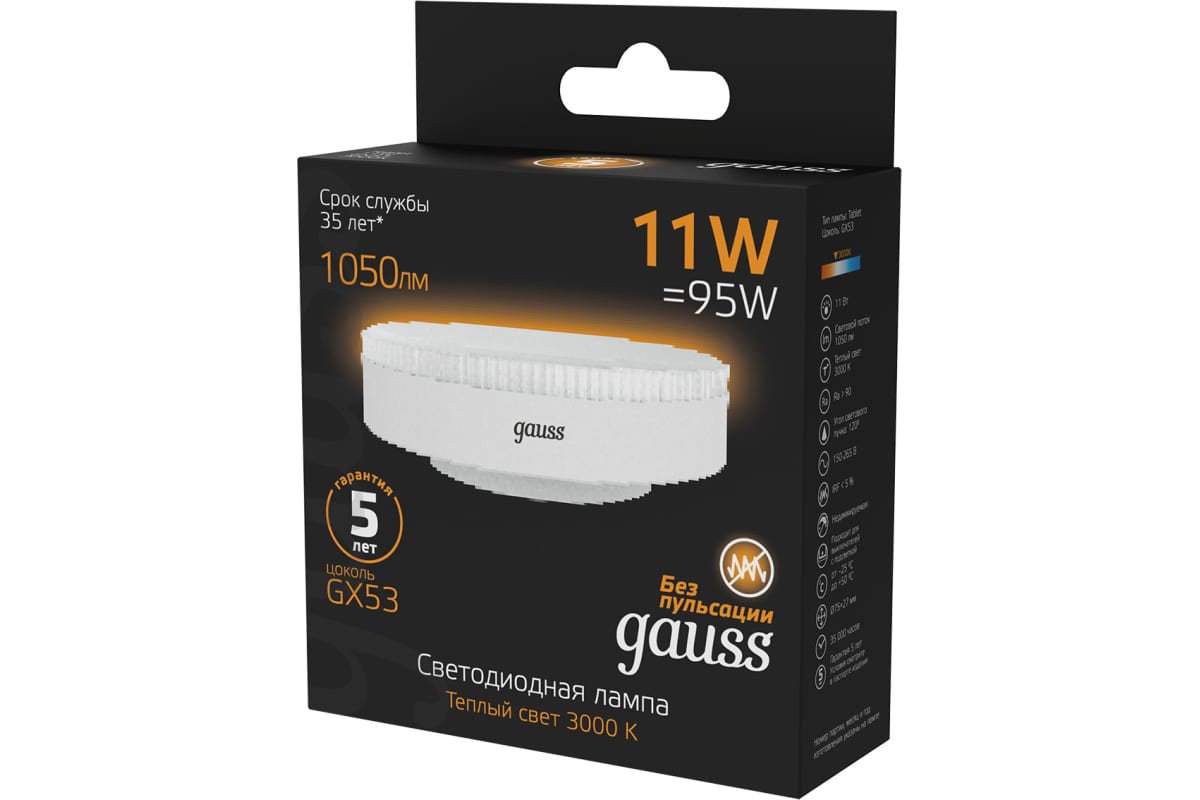 Технические характеристики Gauss GX53 11W, 1050lm, 3000K, LED 108008111