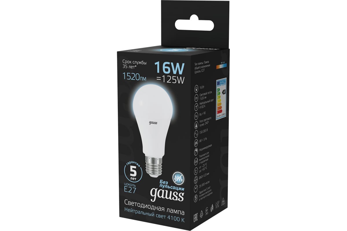 Технические характеристики Gauss LED A60 16W E27 1470lm 4100K 102502216