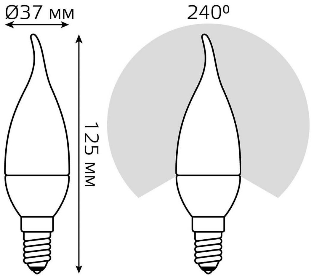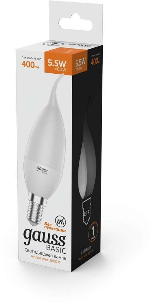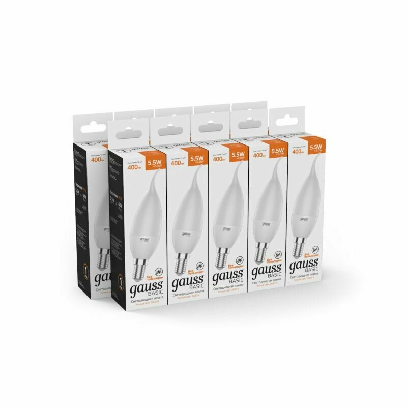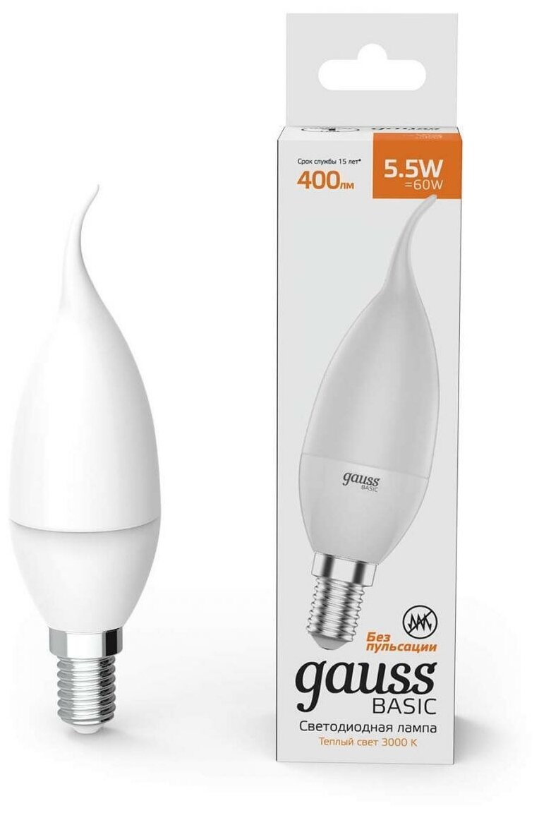 Технические характеристики Gauss Basic свеча на ветру 5,5W, 400lm, 3000K, E14, LED 1034116