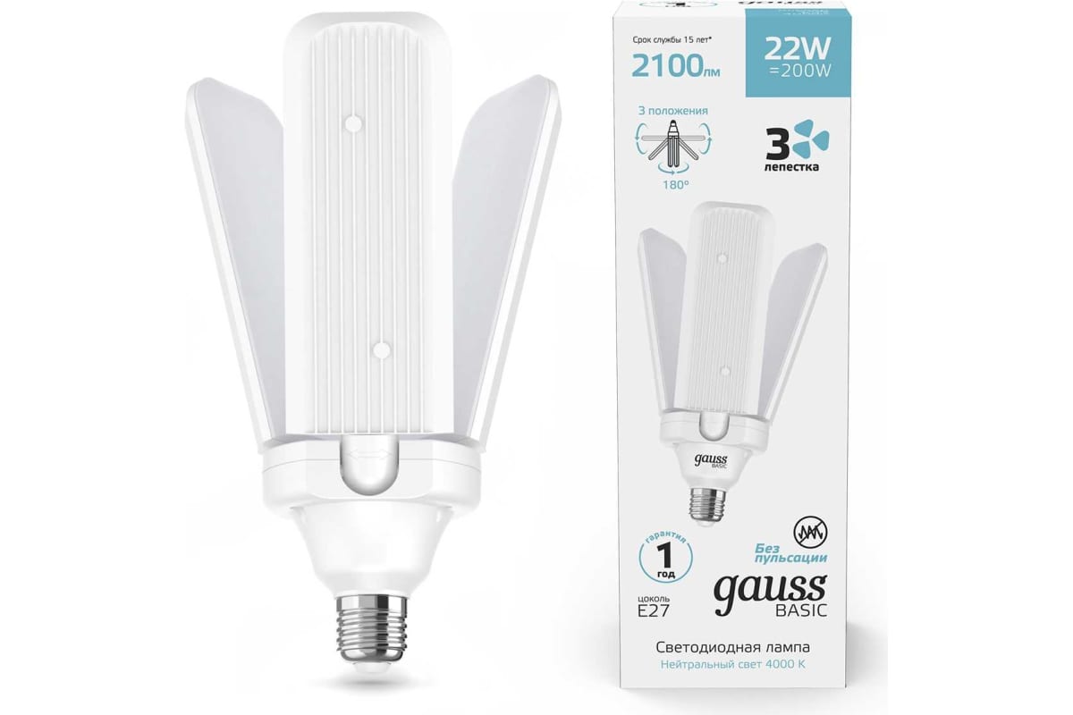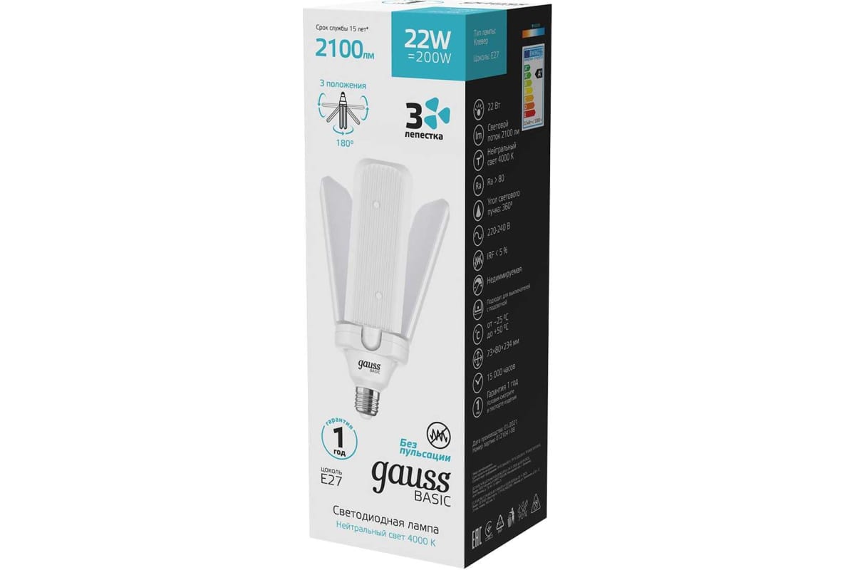 Технические характеристики Gauss Basic 22W 2100lm 4000K E27 Клевер-3 LED 11732222