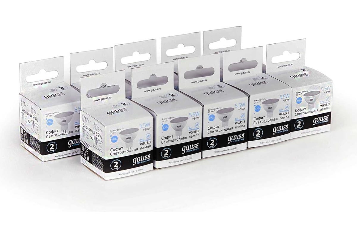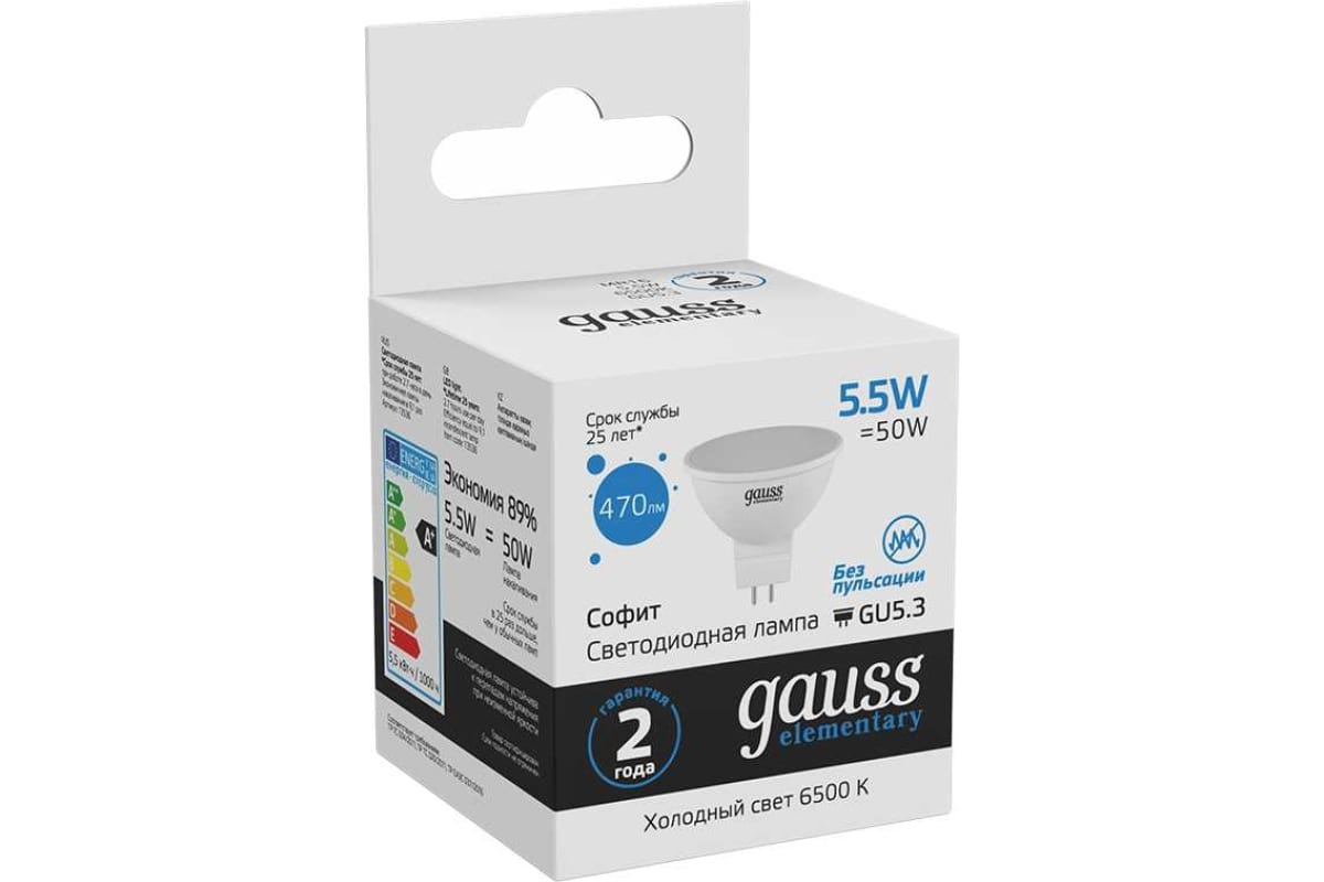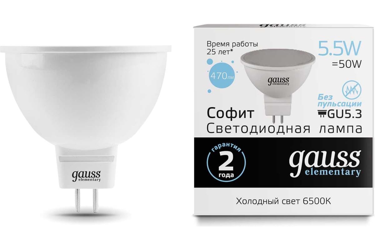 Технические характеристики Gauss Elementary LED MR16 GU5.3 5.5W 470lm 6500К 13536