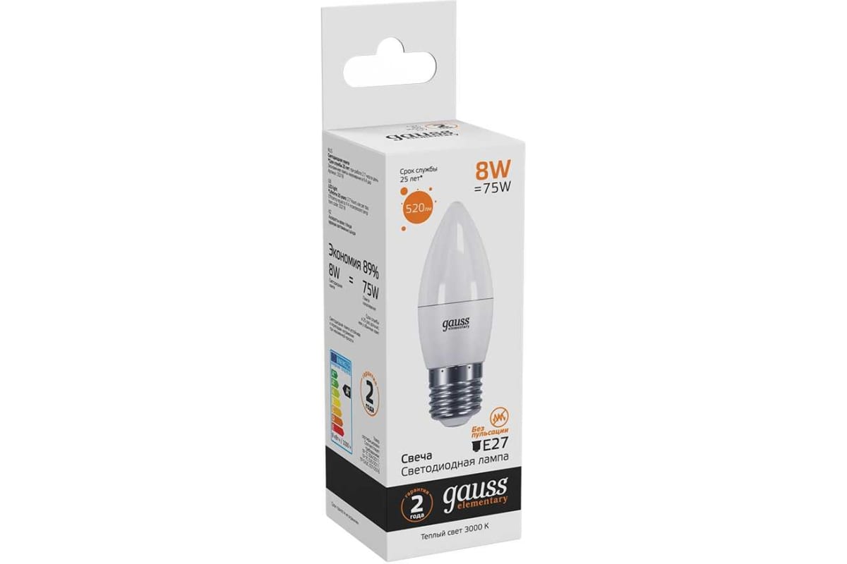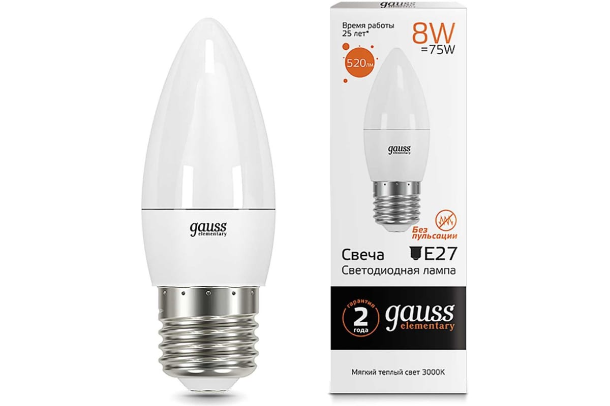 Технические характеристики Gauss LED Elementary Candle 8W E27 2700K 33218