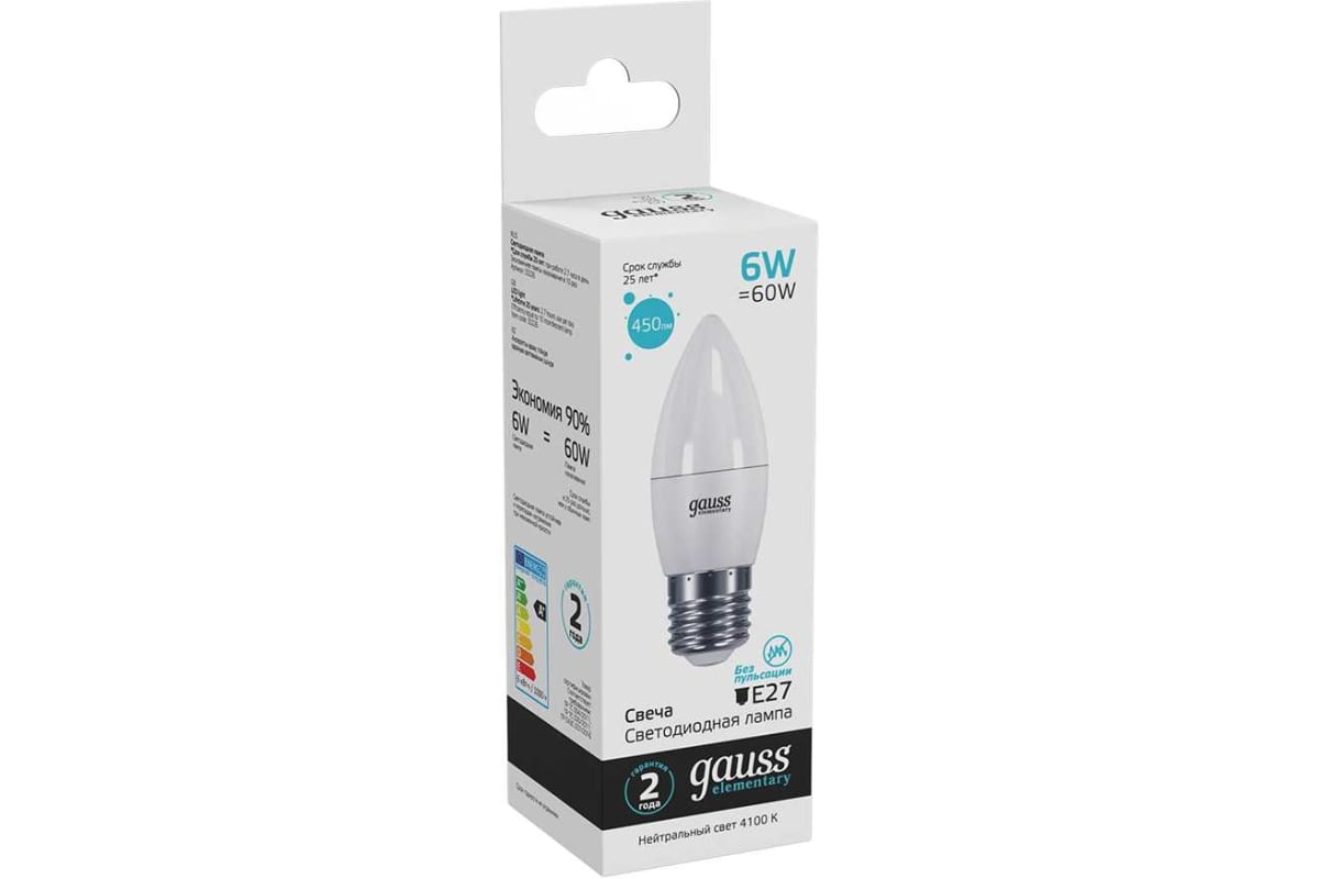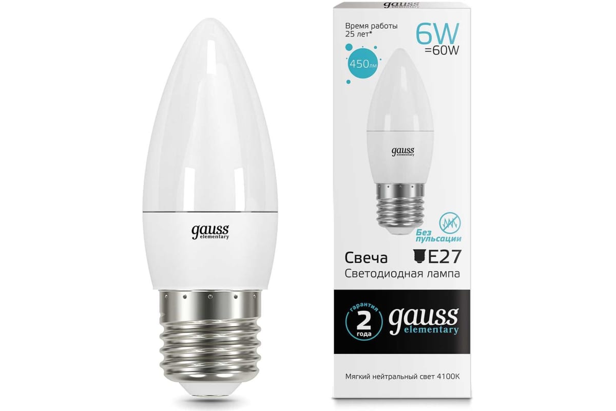Технические характеристики Gauss LED Elementary Candle 6W E27 4100K 33226