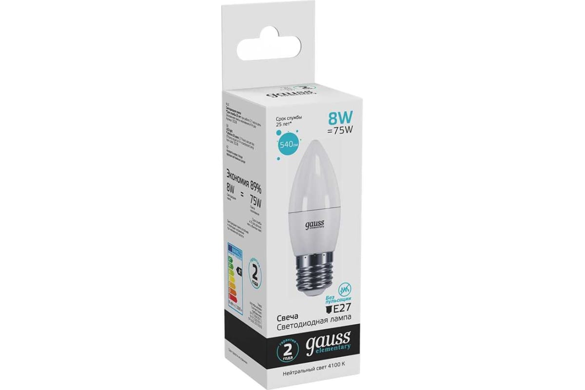 Технические характеристики Gauss LED Elementary Candle 8W E27 4100K 33228