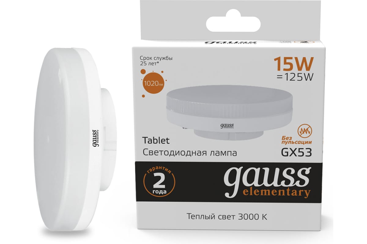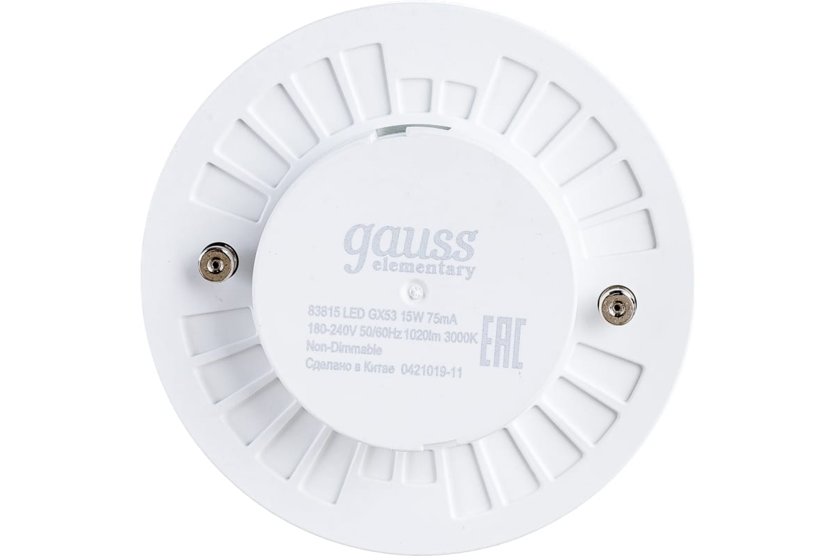 Технические характеристики Gauss Elementary LED GX53 15W 1020lm 3000K 83815