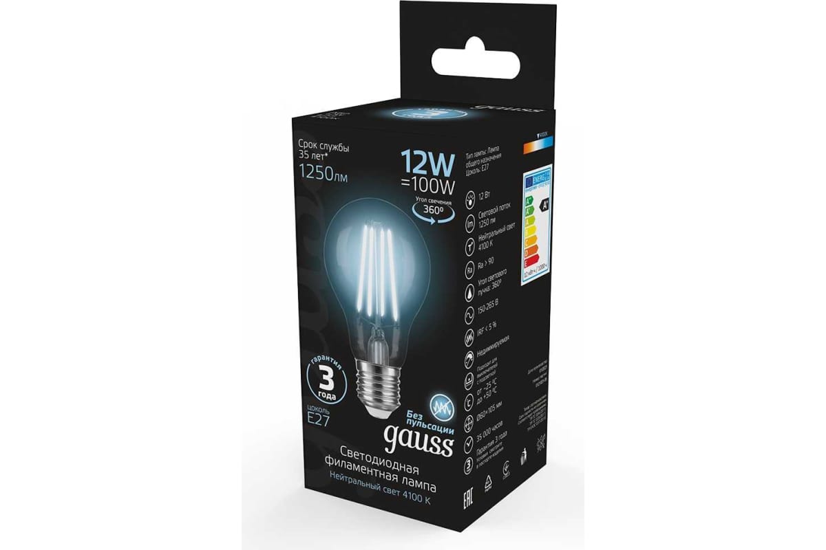 Технические характеристики Gauss Filament А60 12W 1250lm 4100К Е27 LED 102902212