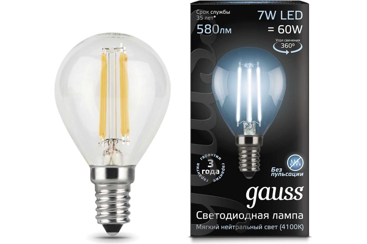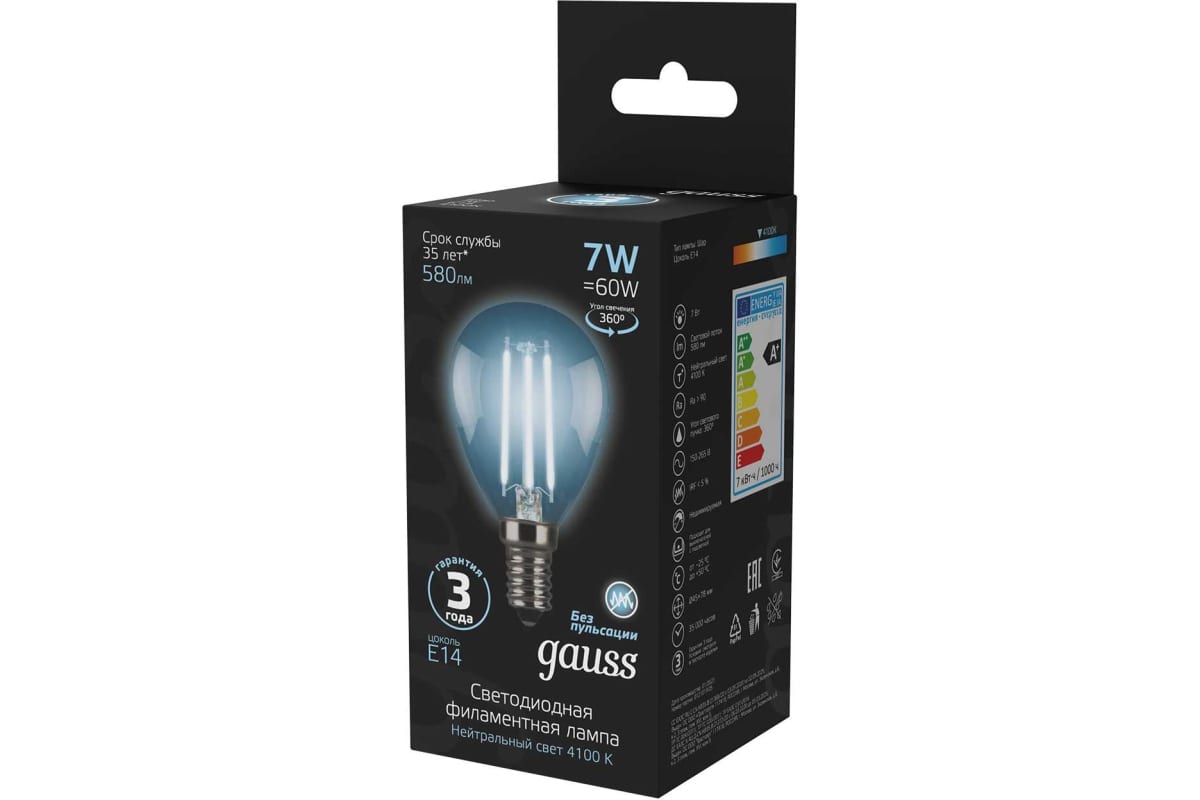 Технические характеристики Gauss LED Filament Шар E14 7W 580lm 4100K 105801207