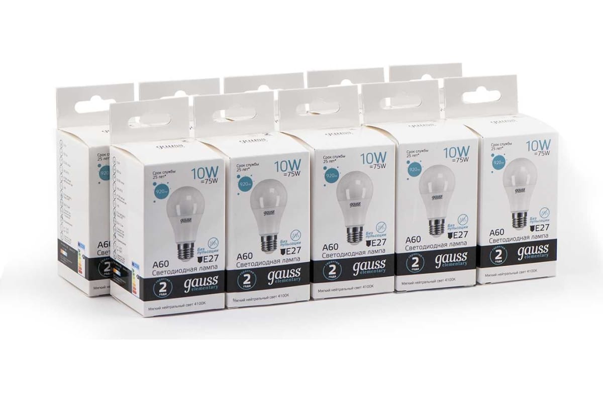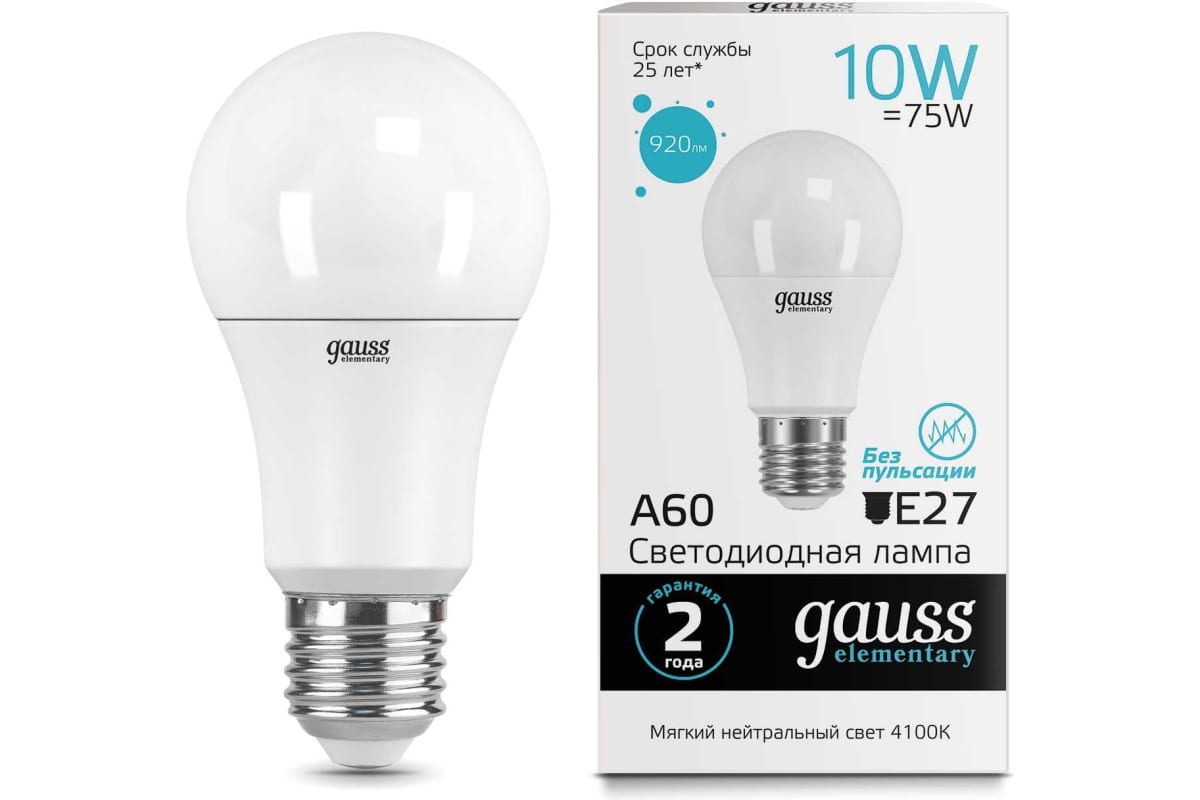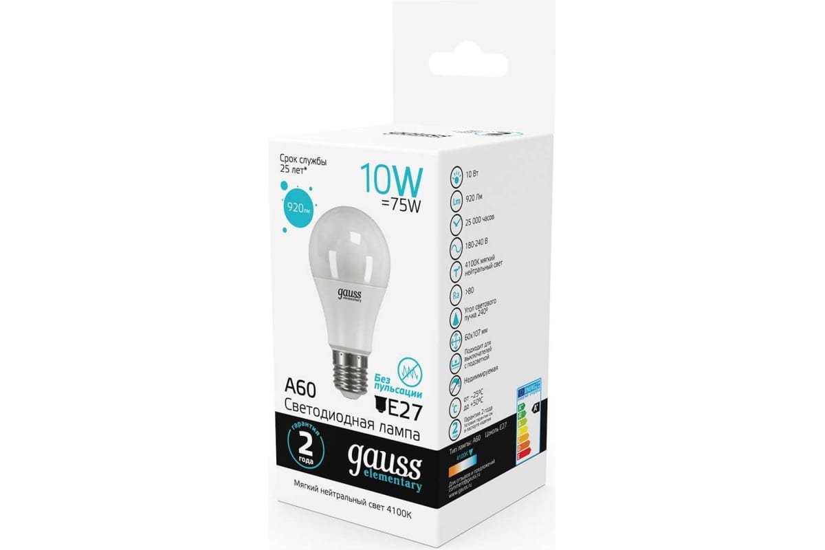 Технические характеристики Gauss LED Elementary A60 10W E27 4100K 23220