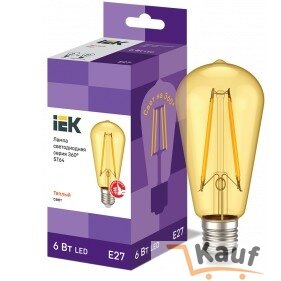 Лампа светодиодная IEK ST64 ретро золото 6Вт 230В 2700К E27 серия 360