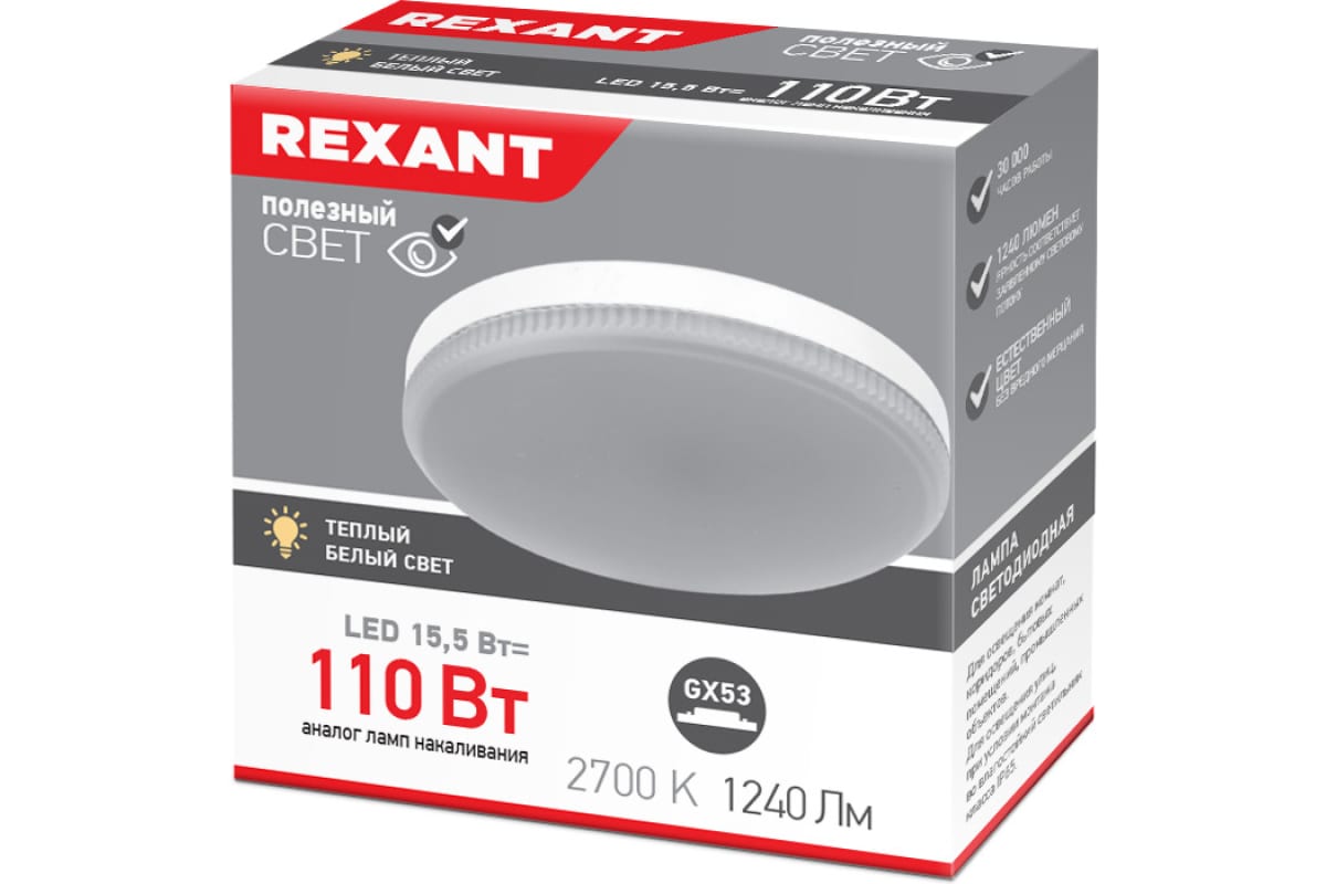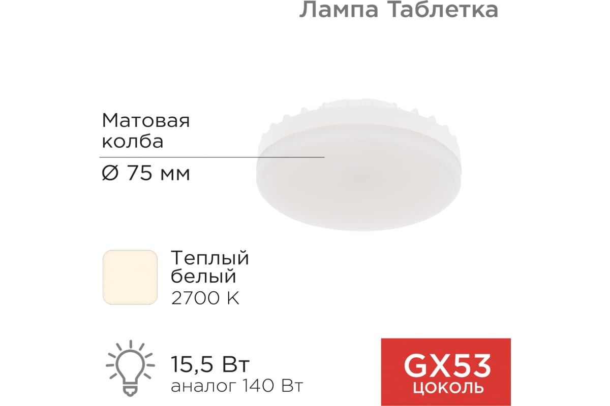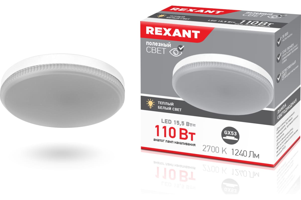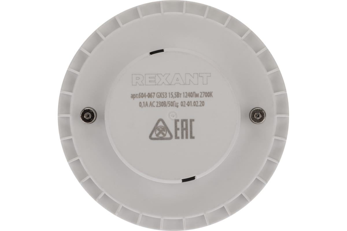 Технические характеристики REXANT Рефлектор GX53 15,5Вт 1240лм 2700K теплый свет 604-067